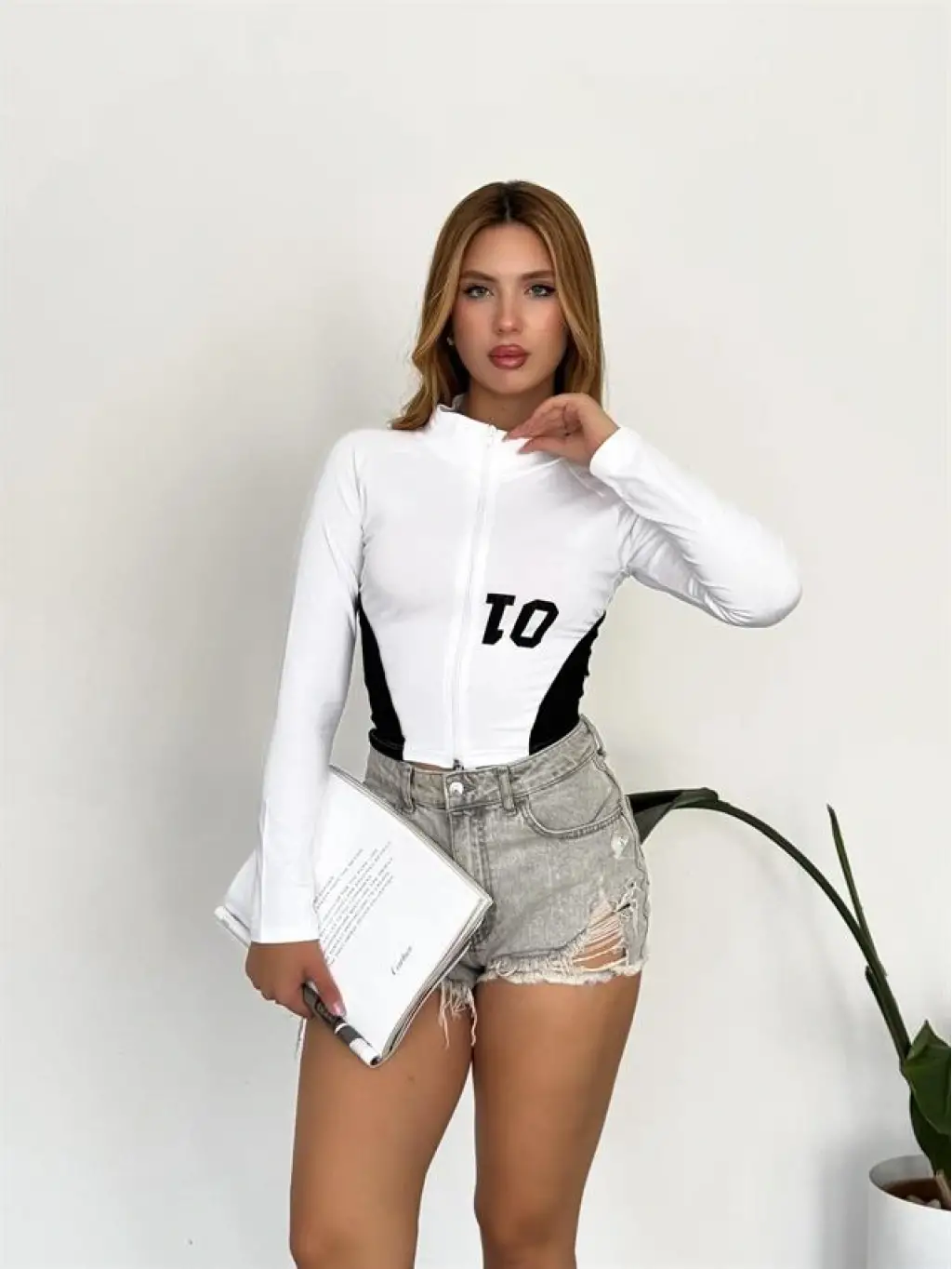 yeni sezon ürünlerinden olan 10 Number Yarışçı Beyaz Uzun Kollu Bluz Crop sana çok yakışacak. Biz üretmeye devam ettikçe, sen de tarzına tarz katmaya devam et!