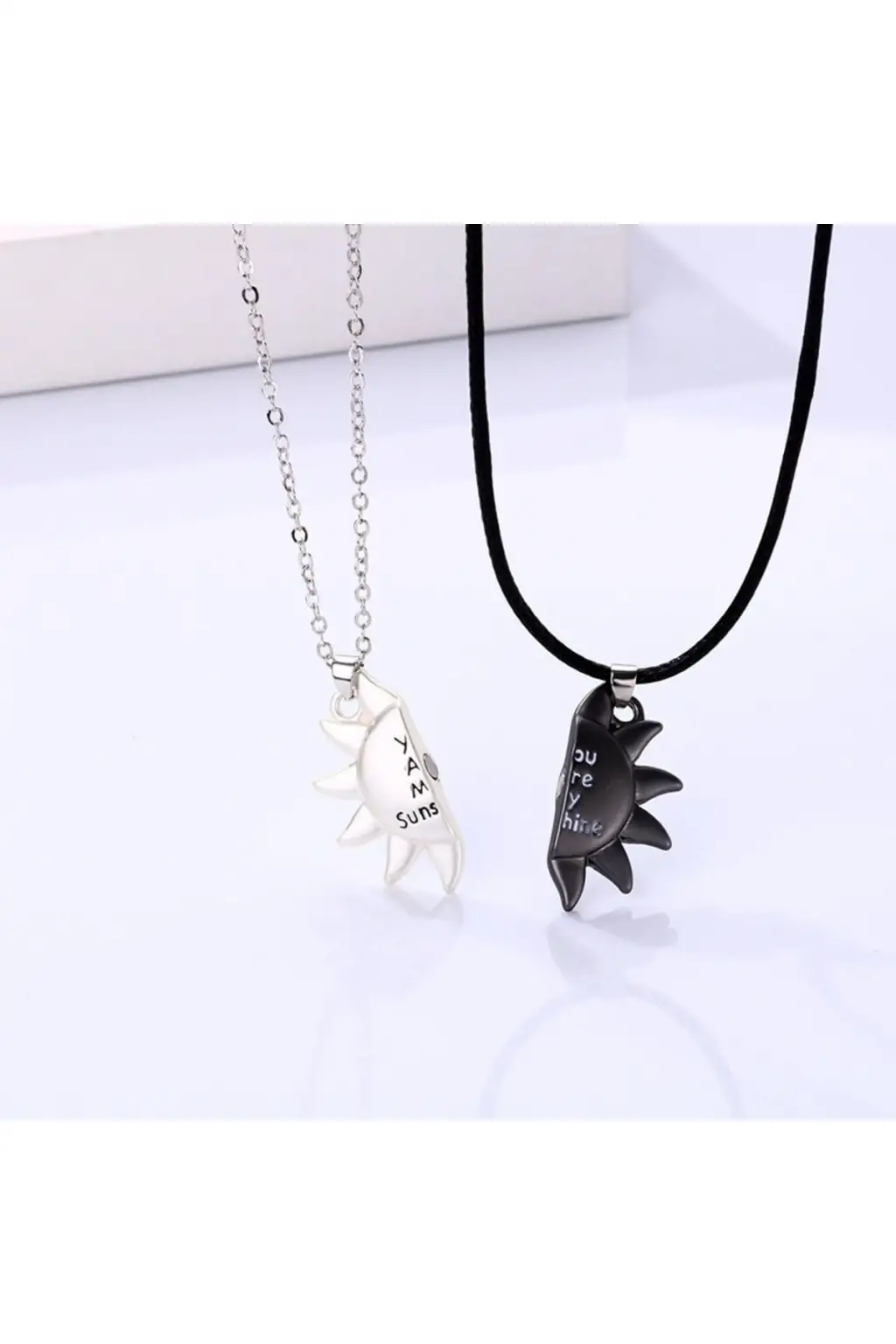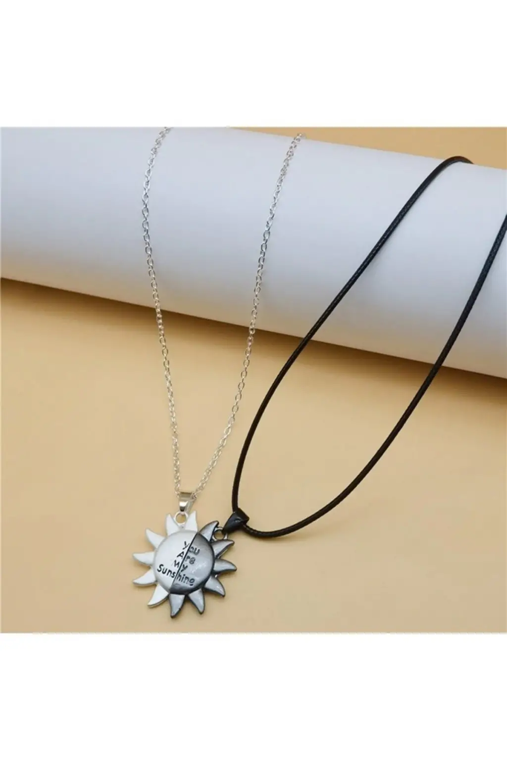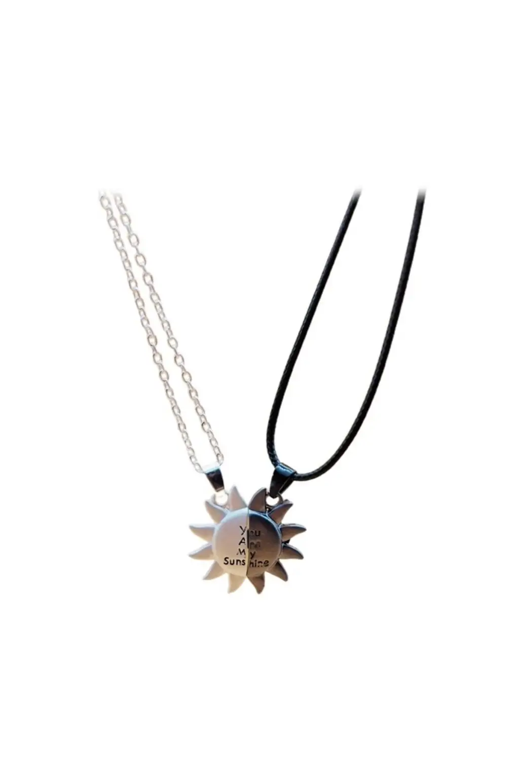 ESC BUTİK'in özel olarak tasarladığı 2 Adet You Are My Sunshine Mıknatıslı Sevgili Arkadaşlık Hediyelik Kolye Çift Kolyesi, sevgililer veya yakın arkadaşlar arasındaki özel bağı simgeliyor.