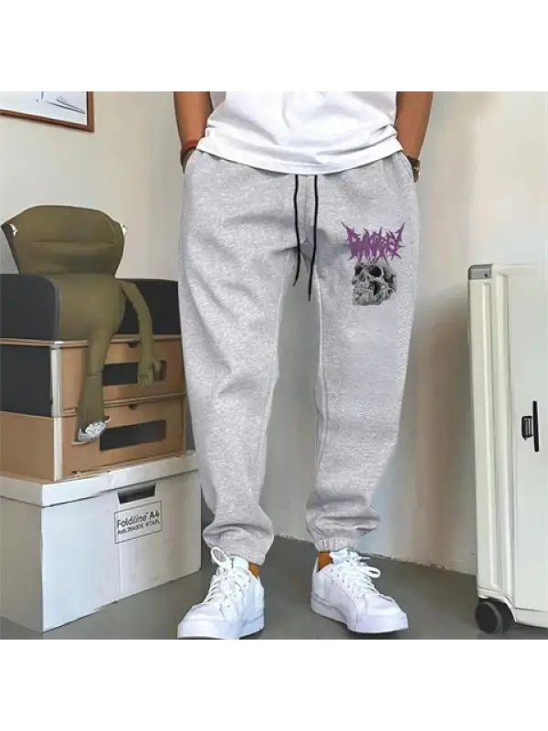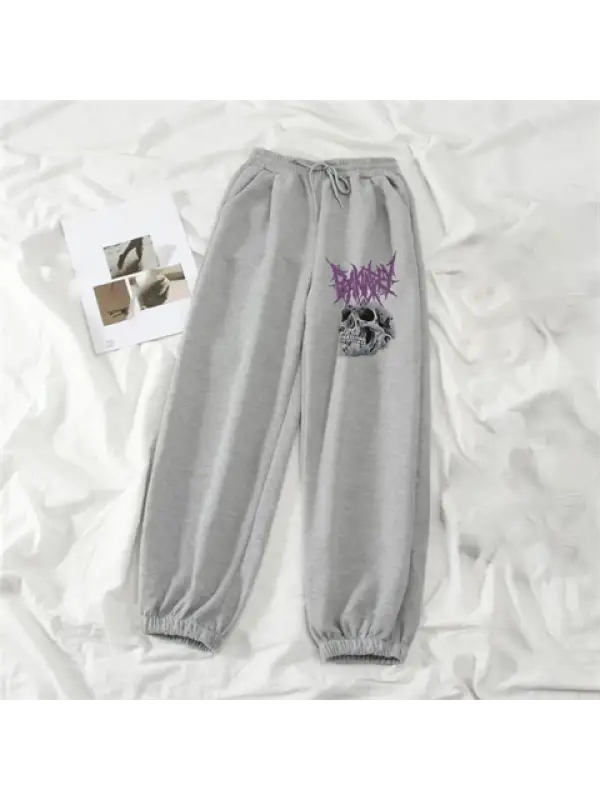 Gothic Skull Baskılı Unisex Gri Eşofman Altı
