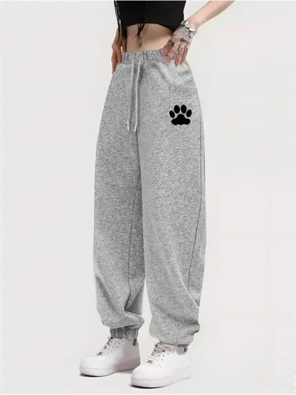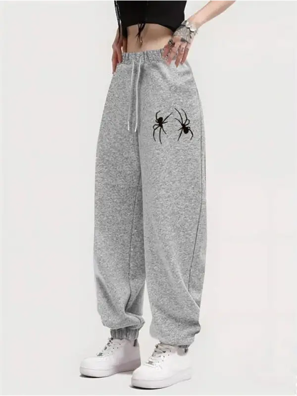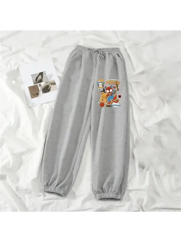 Spider Cat Baskılı Unisex Gri Eşofman Altı