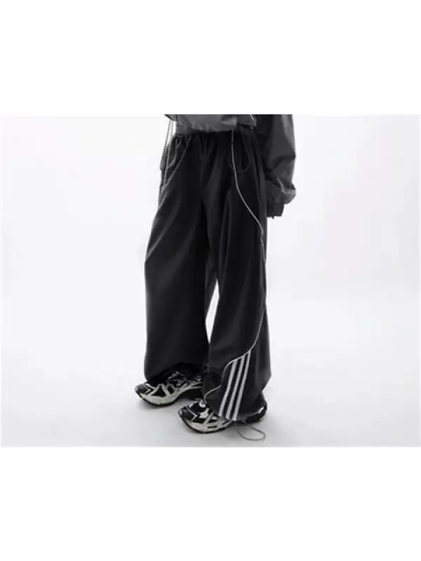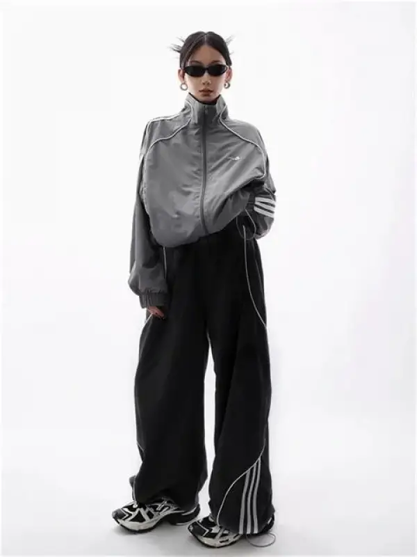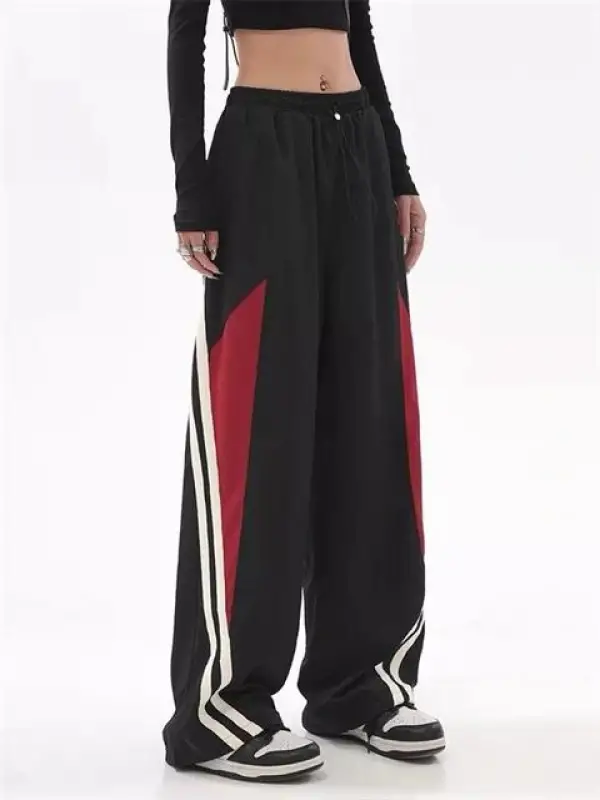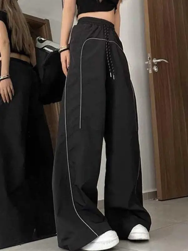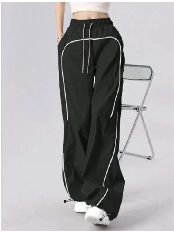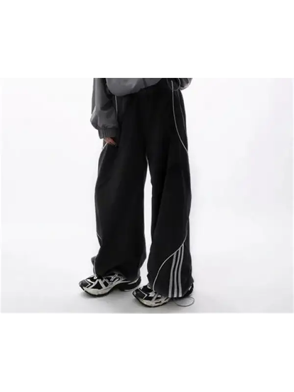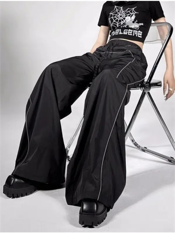 Y2K Newstyle Baskılı Wide Leg Jean Bol Paça Siyah Kot Pantolon