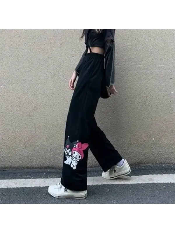 Sokak Tarzı Kuromi & Melody Baskılı Unisex Baggy Eşofman