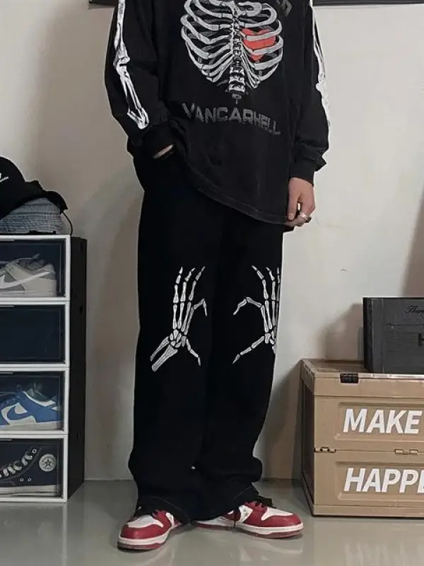 Sokak Tarzı Skeleton Heart Baskılı Unisex Baggy Eşofman