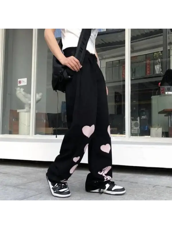 Sokak Tarzı Skull Heart Baskılı Unisex Baggy Eşofman