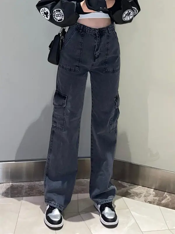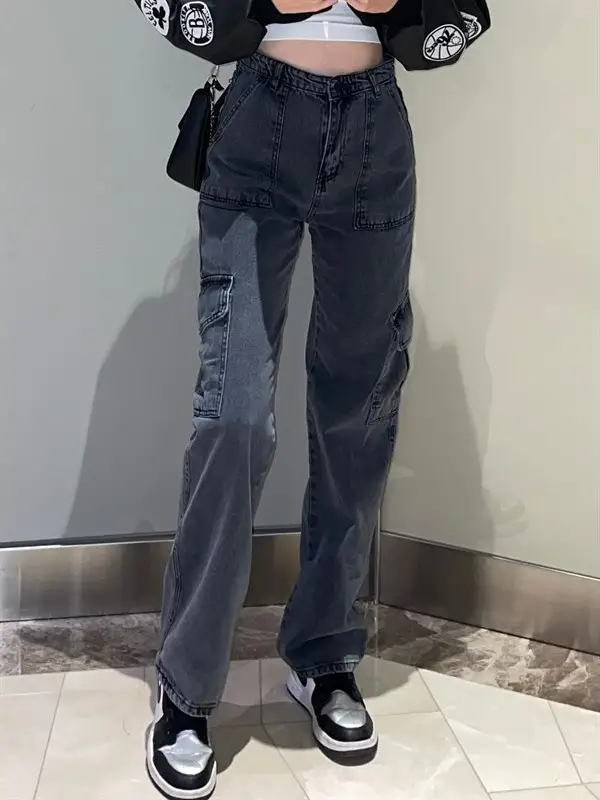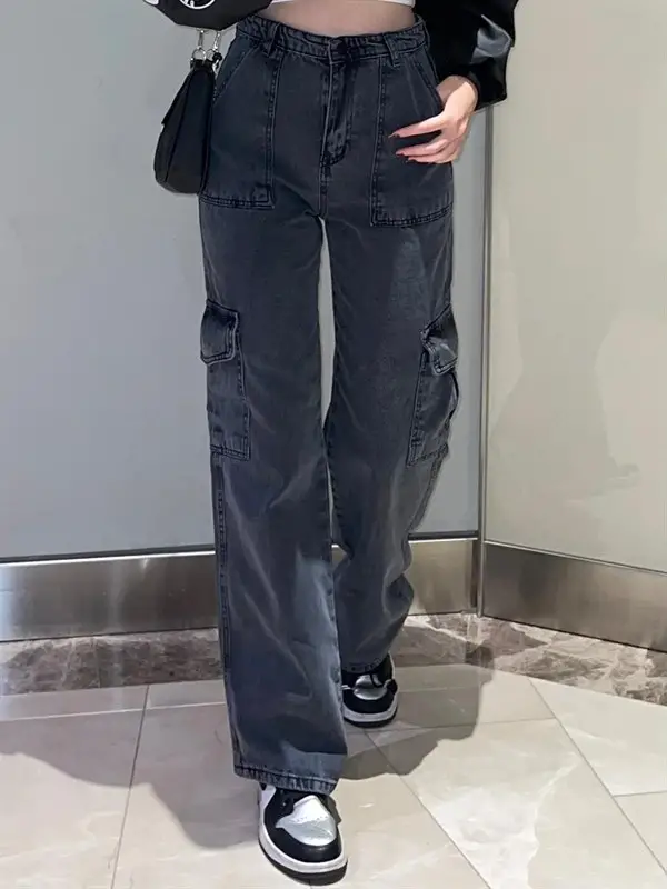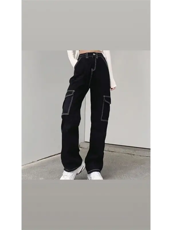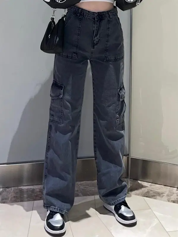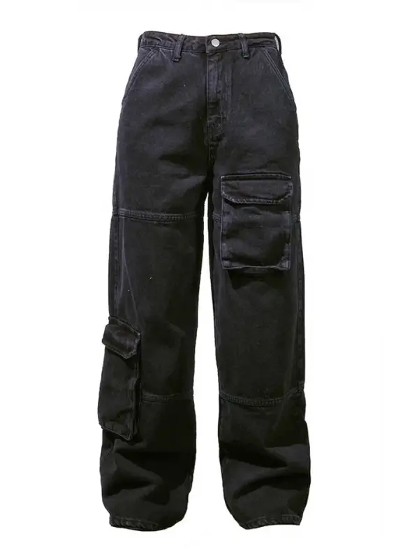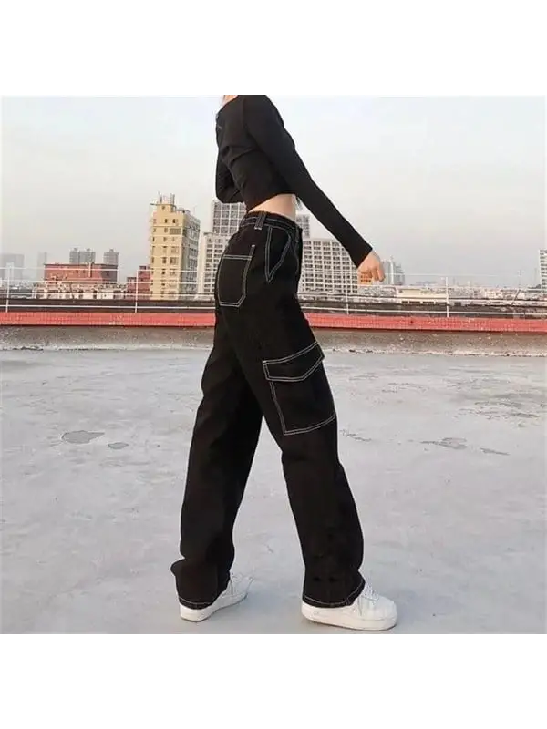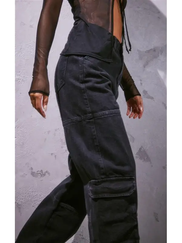 Y2K RECYCLED BLACK CARGO POCKET WIDE LEG JEAN