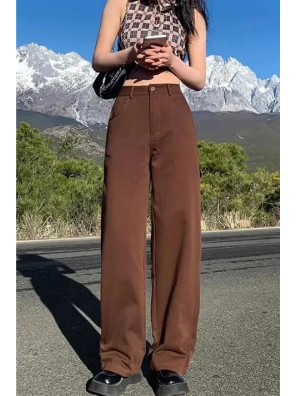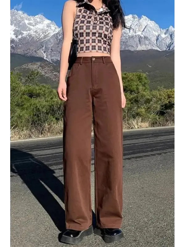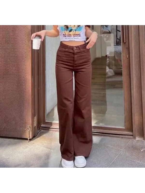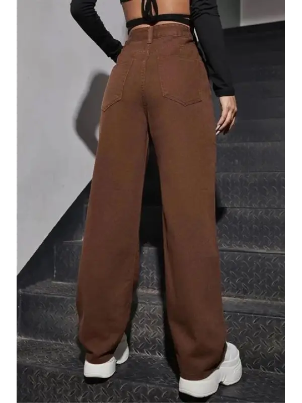 Kahverengi Bol Paça Jean Palazzo Wide Leg Kot Pantolon