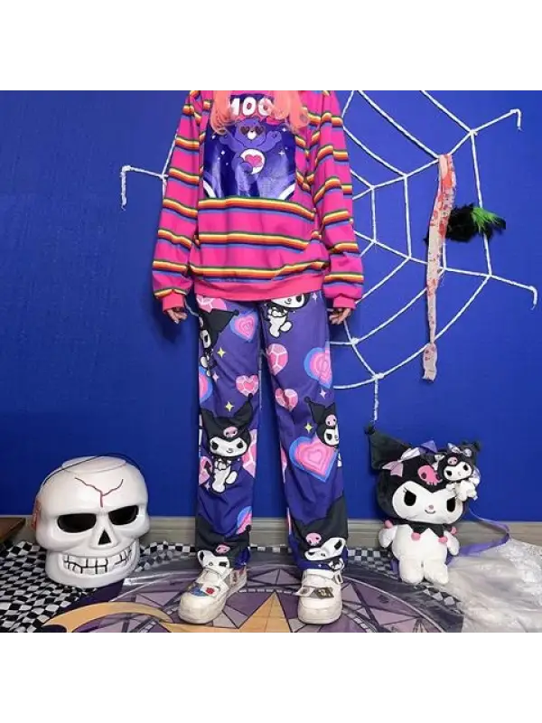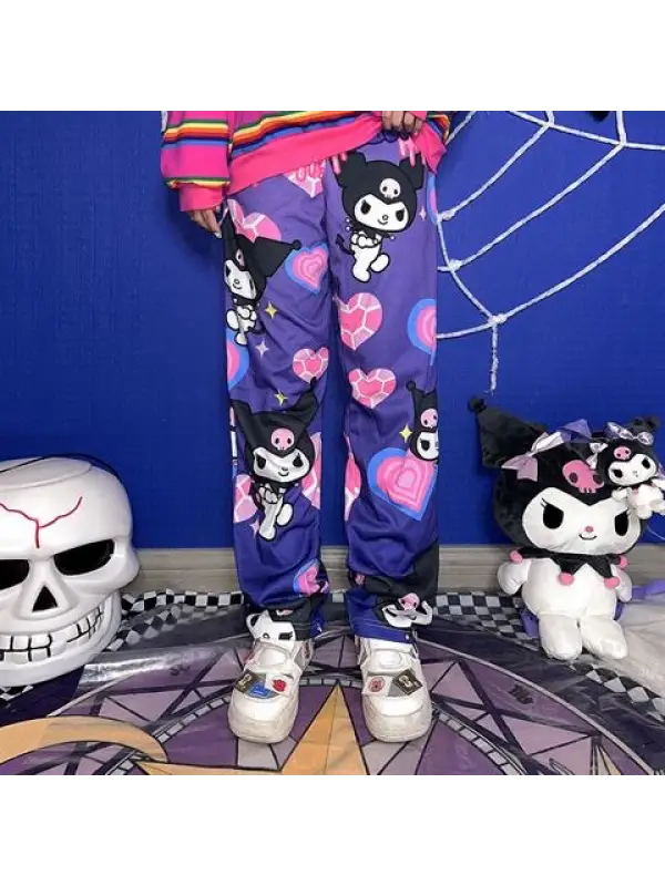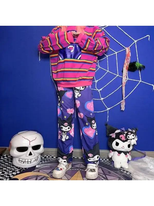 Kuromi & Heart Collage Purple Wide Leg Unisex Tracksuit