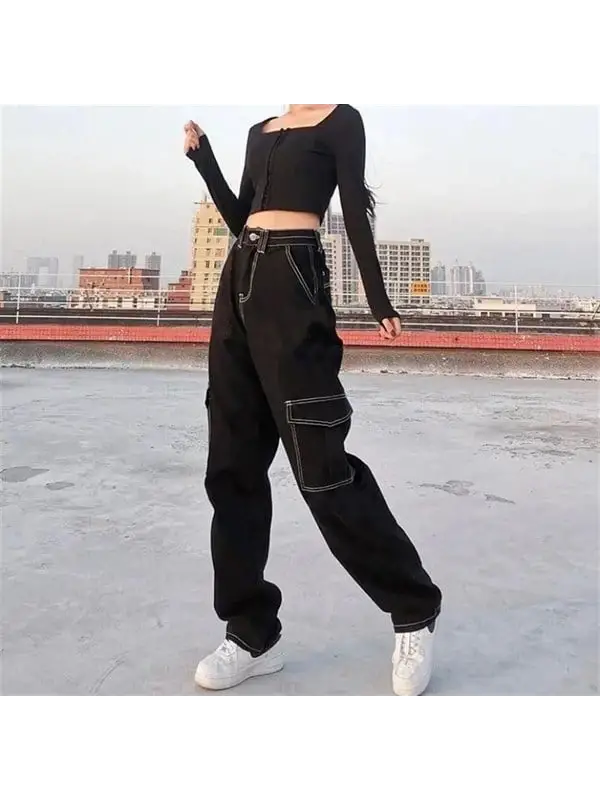 HARAJUKU UNISEX CARGO POCKET SİYAH PANTOLON