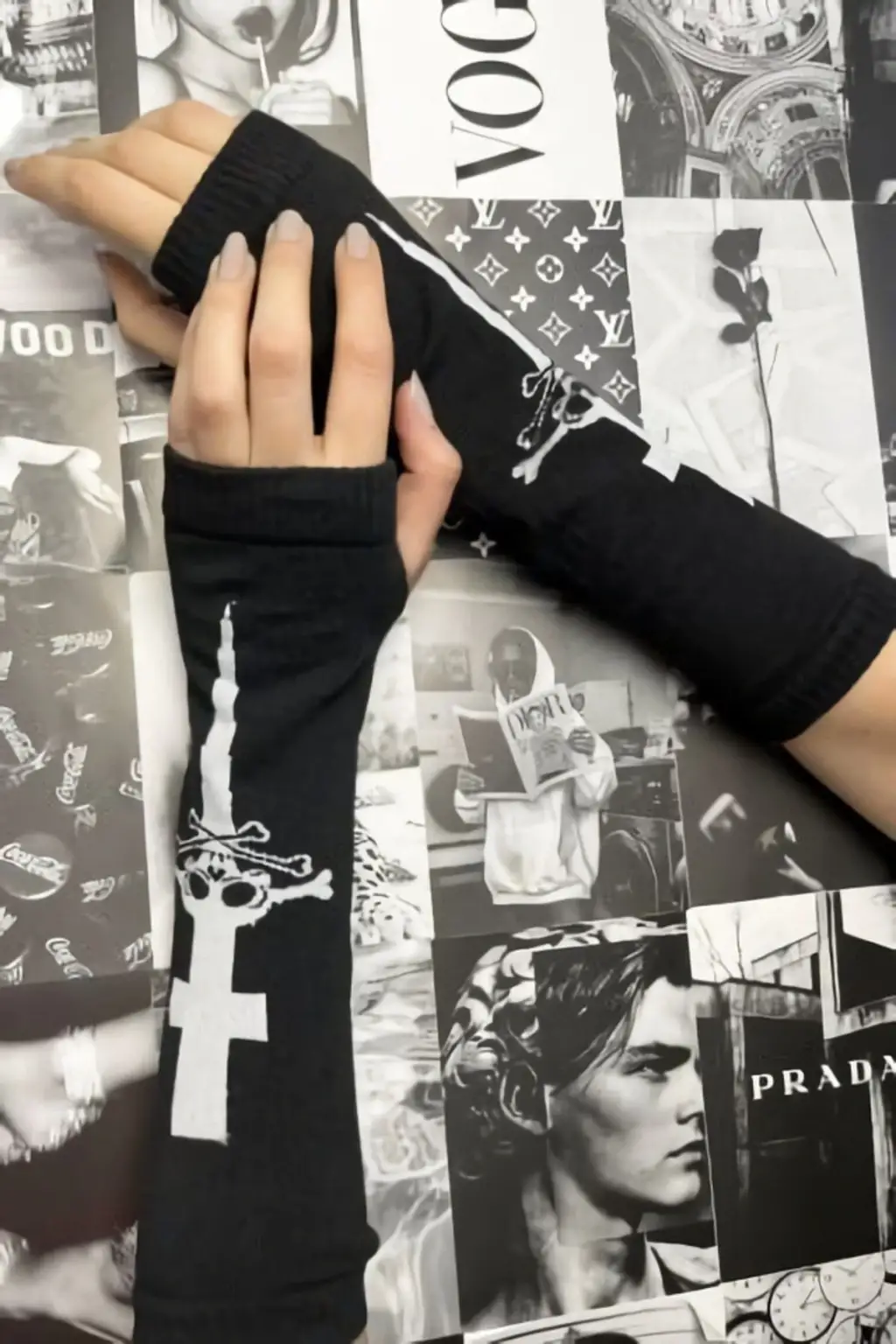 Omuzdan başlayarak dirseğe kadar uzanan desenleriyle dikkat çeken Anime Gotik Siyah Haç Kurukafa Kolluk, tarzınızı tamamlamanıza yardımcı olacaktır.