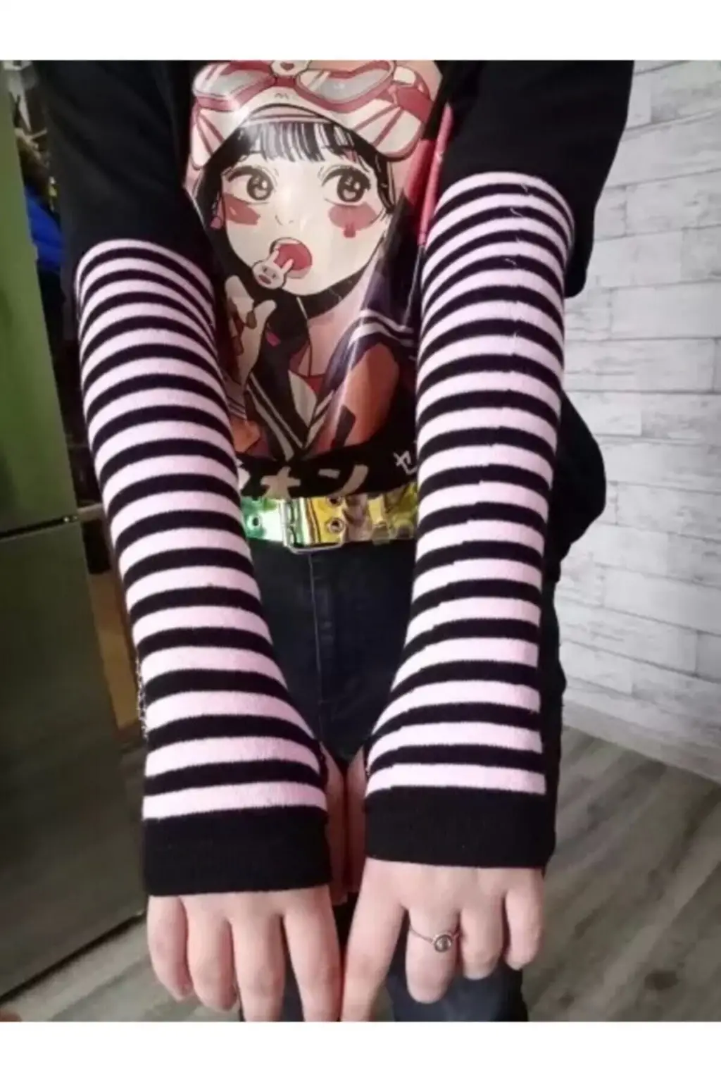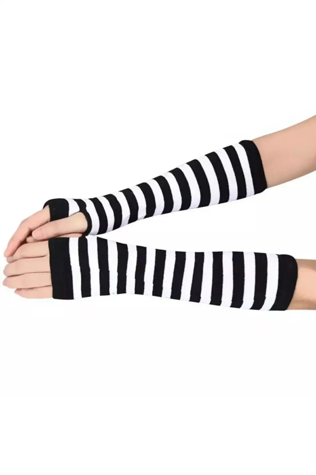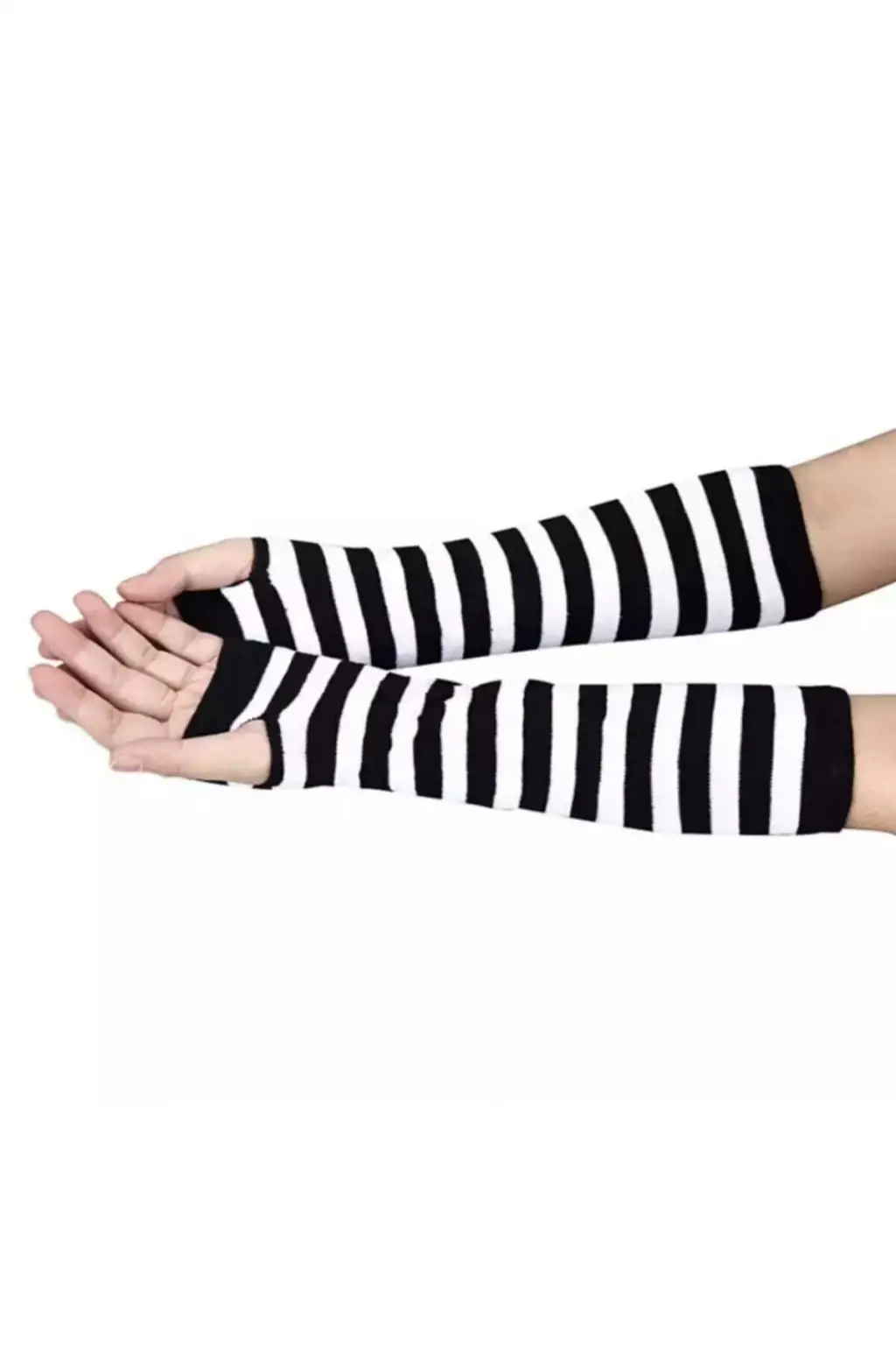 ESC BUTİK Anime Grunge Punk Siyah Beyaz Çizgili Kolluk, tarzınızı tamamlayacak bir aksesuardır.