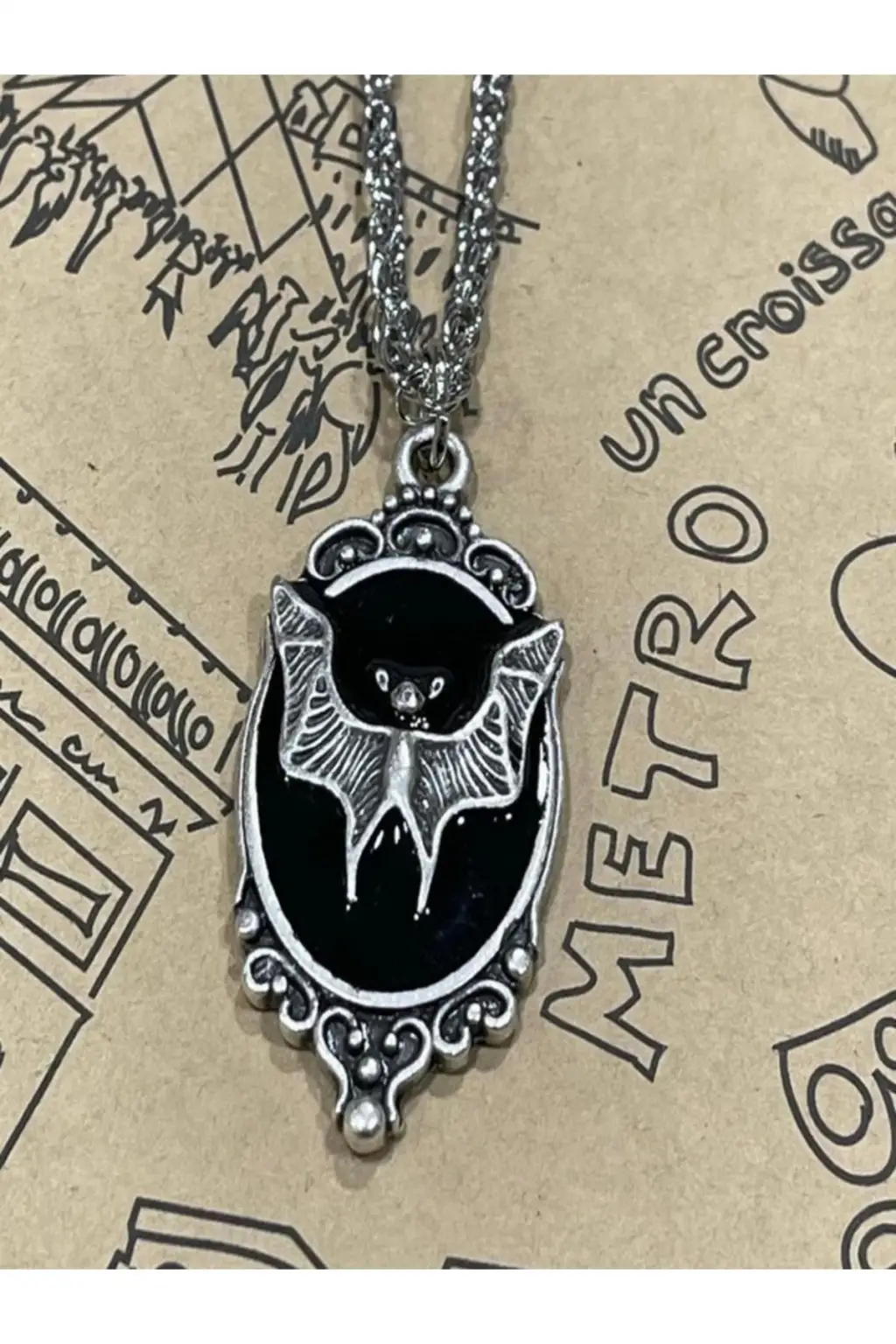 Bu ESC BUTİK marka antik, gotik tarzdaki gümüş kaplama unisex kolye, Death Note hayranları için özel olarak tasarlanmıştır. Sembolik yarasa figürü, kolyeye karakteristik bir hava katarken, zincir detayı ise şıklığı tamamlar.