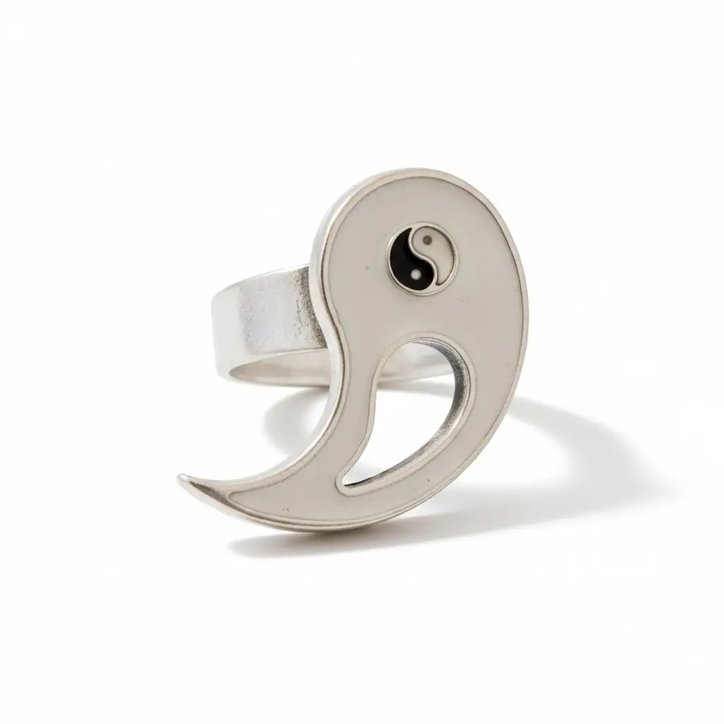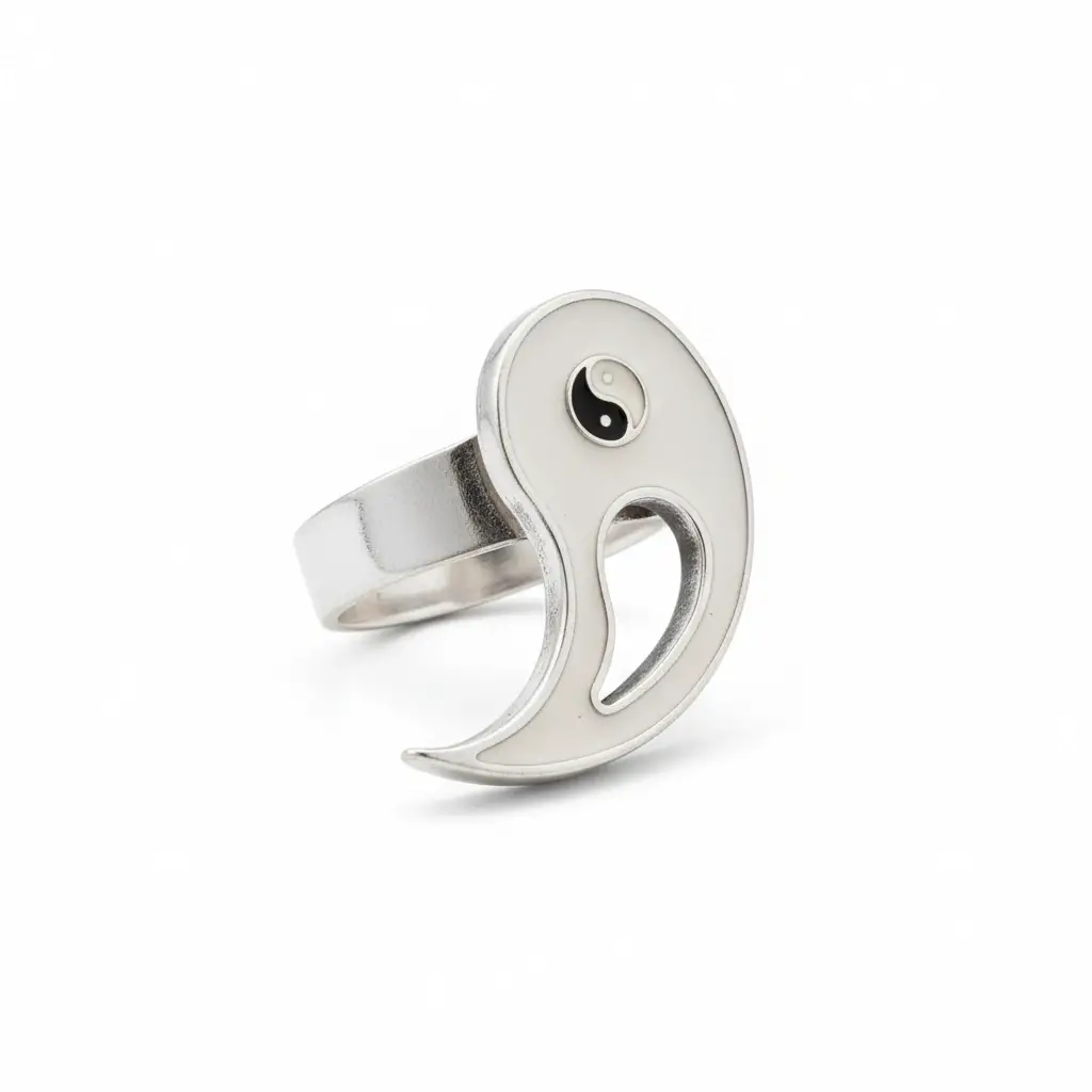 - Ying ve Yang sembolünün uyumunu temsil eden bu yüzük, denge ve uyumu simgeliyor.