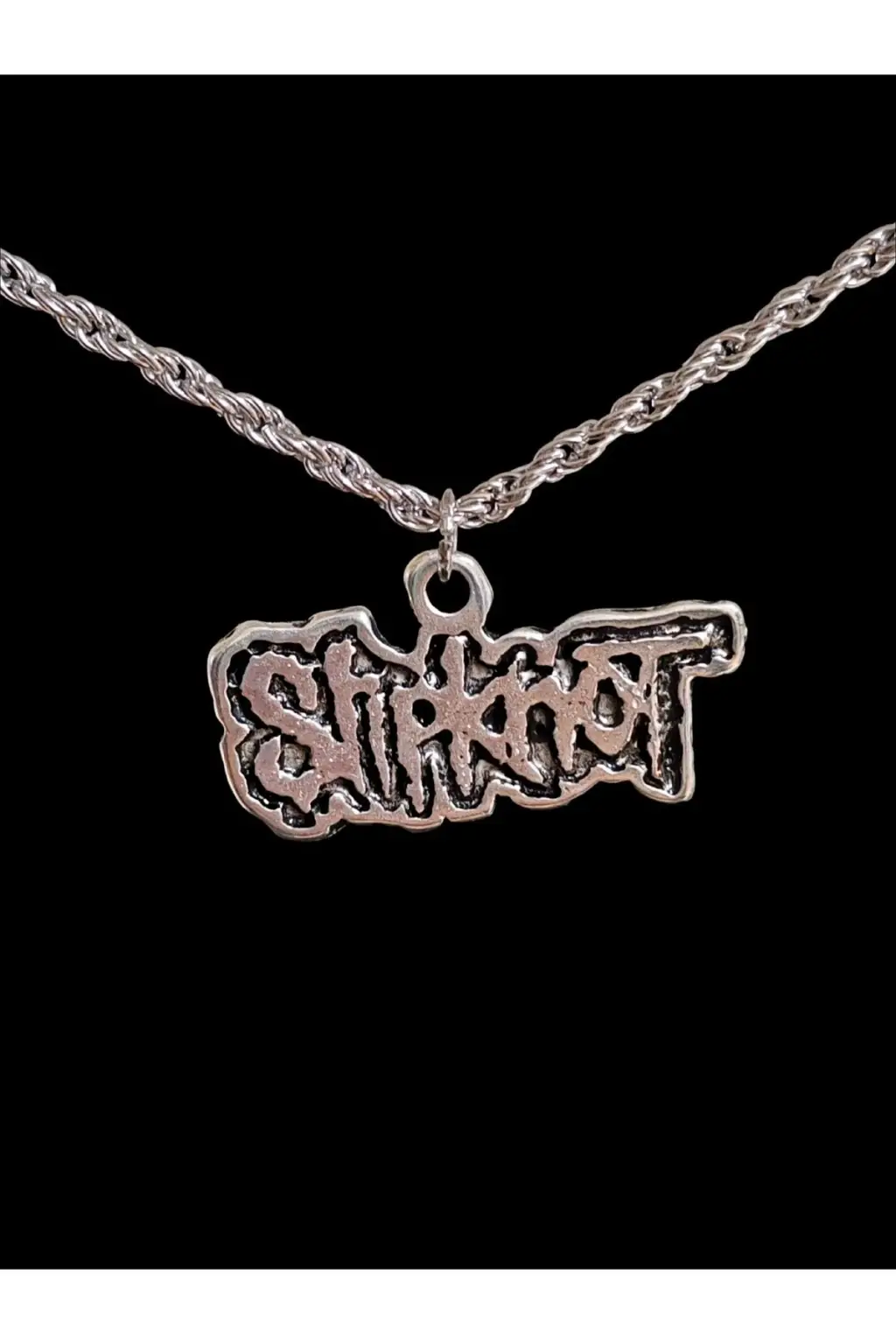 Bu ESC BUTİK tasarımı antik gümüş kaplama çelikten yapılmış bir zincir kolye, anime ve gotik tarzını bir araya getiriyor. Slikp NOT deseniyle dikkat çeken bu kolye, tüm cinsiyetlere hitap eden unisex bir tasarıma sahiptir.