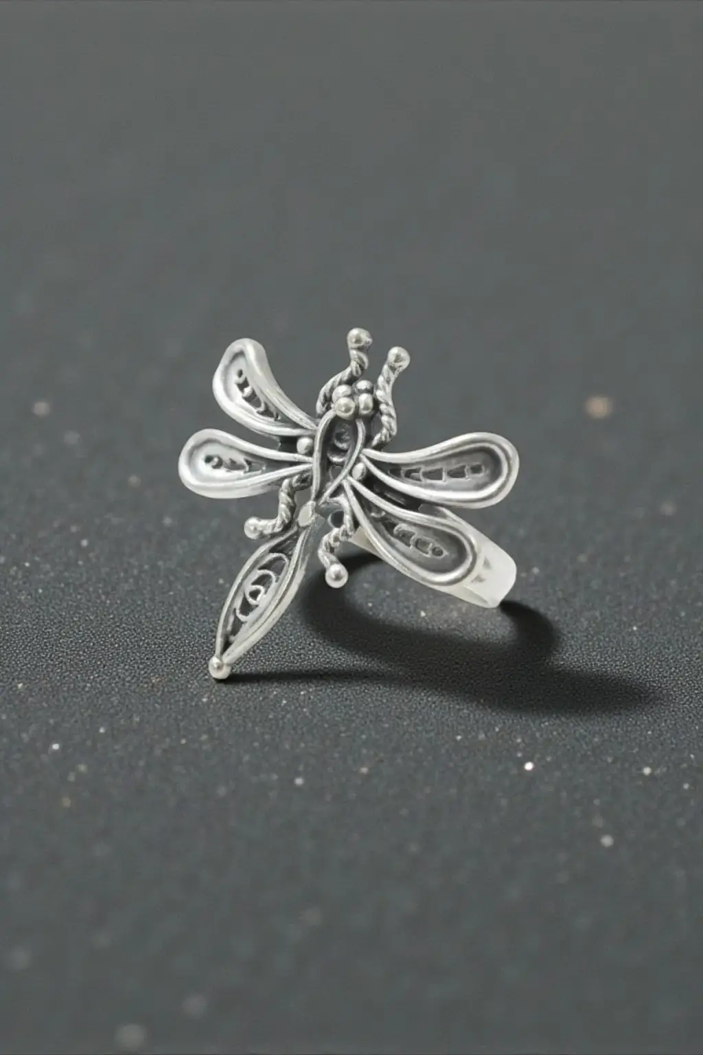 Bu muhteşem yüzük, vintage tarzını modern dokunuşlarla buluşturuyor. Göz alıcı figür detayları ve gümüş rengiyle, her parmakta şıklık ve zarafet sunuyor.