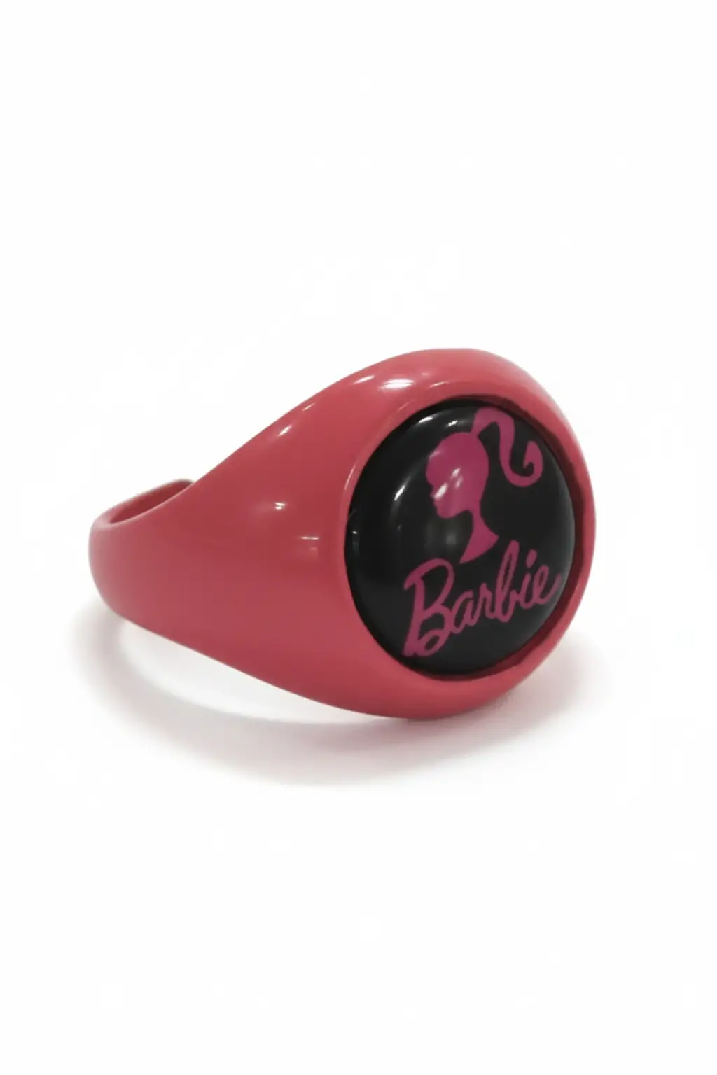 GOSSİP TEAM markasıyla tasarlanan bu yüzük, pembe Barbie yazısı ve logolu detayıyla dikkat çekici bir görünüme sahiptir.