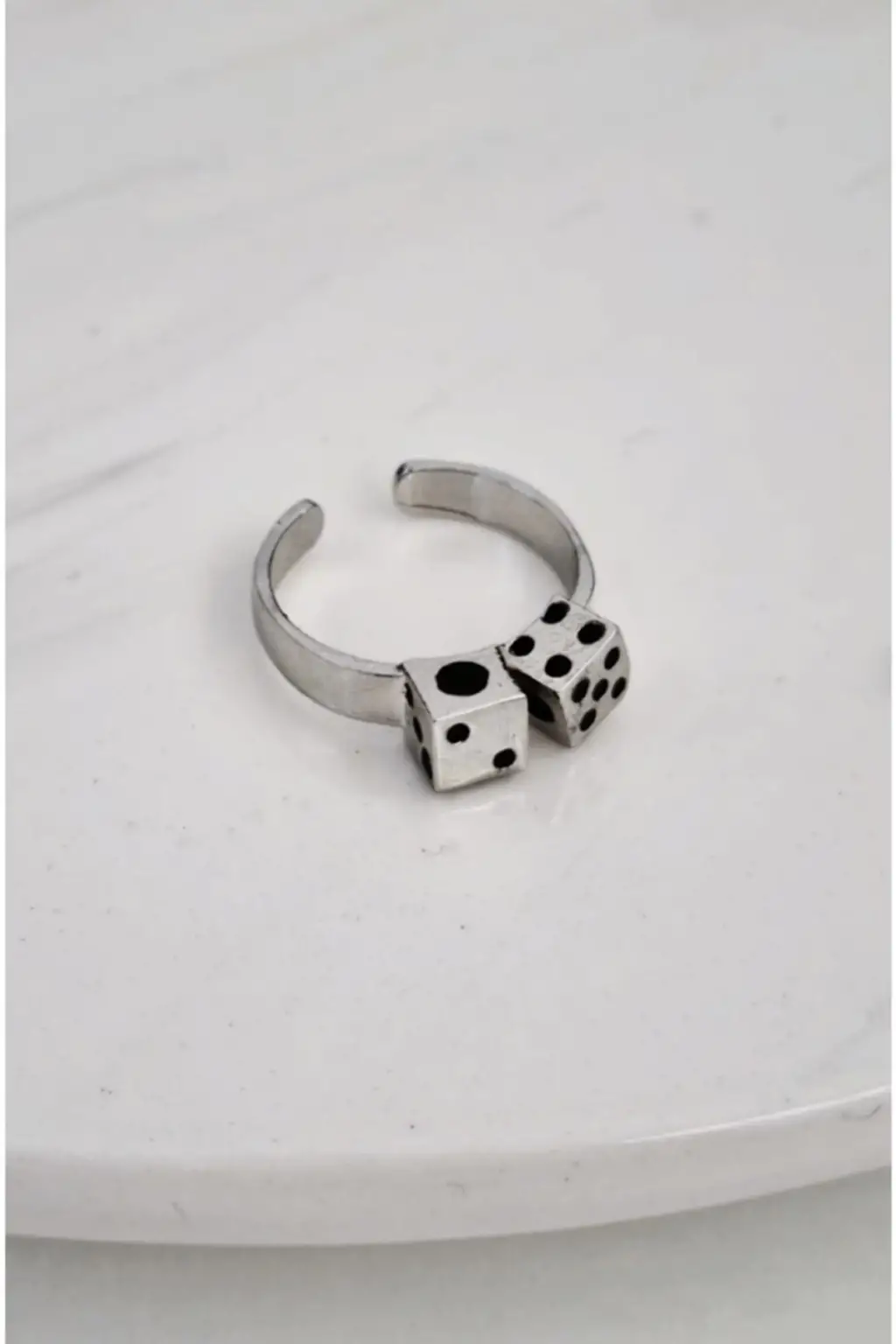 ESC BUTİK'in özel tasarımı olan Antik Gümüş Kaplama Unisex Double Dice Çift Zar Ayarlanabilir Yüzük, hem şıklık arayan kadınların hem de tarzını konuşturmak isteyen erkeklerin tercihi olacak.