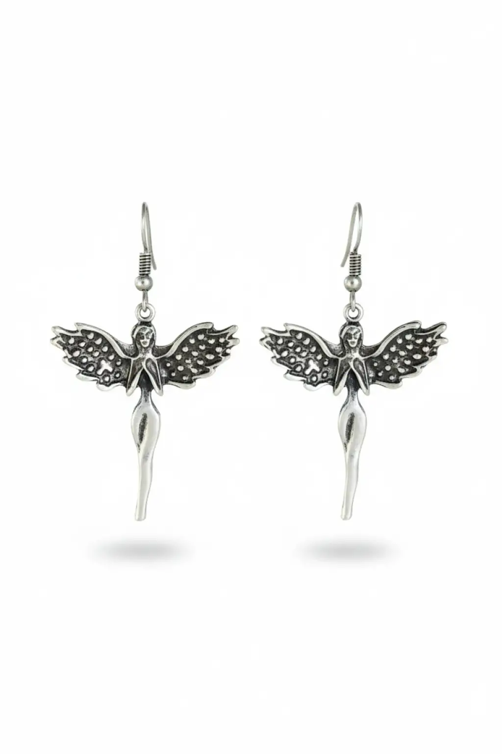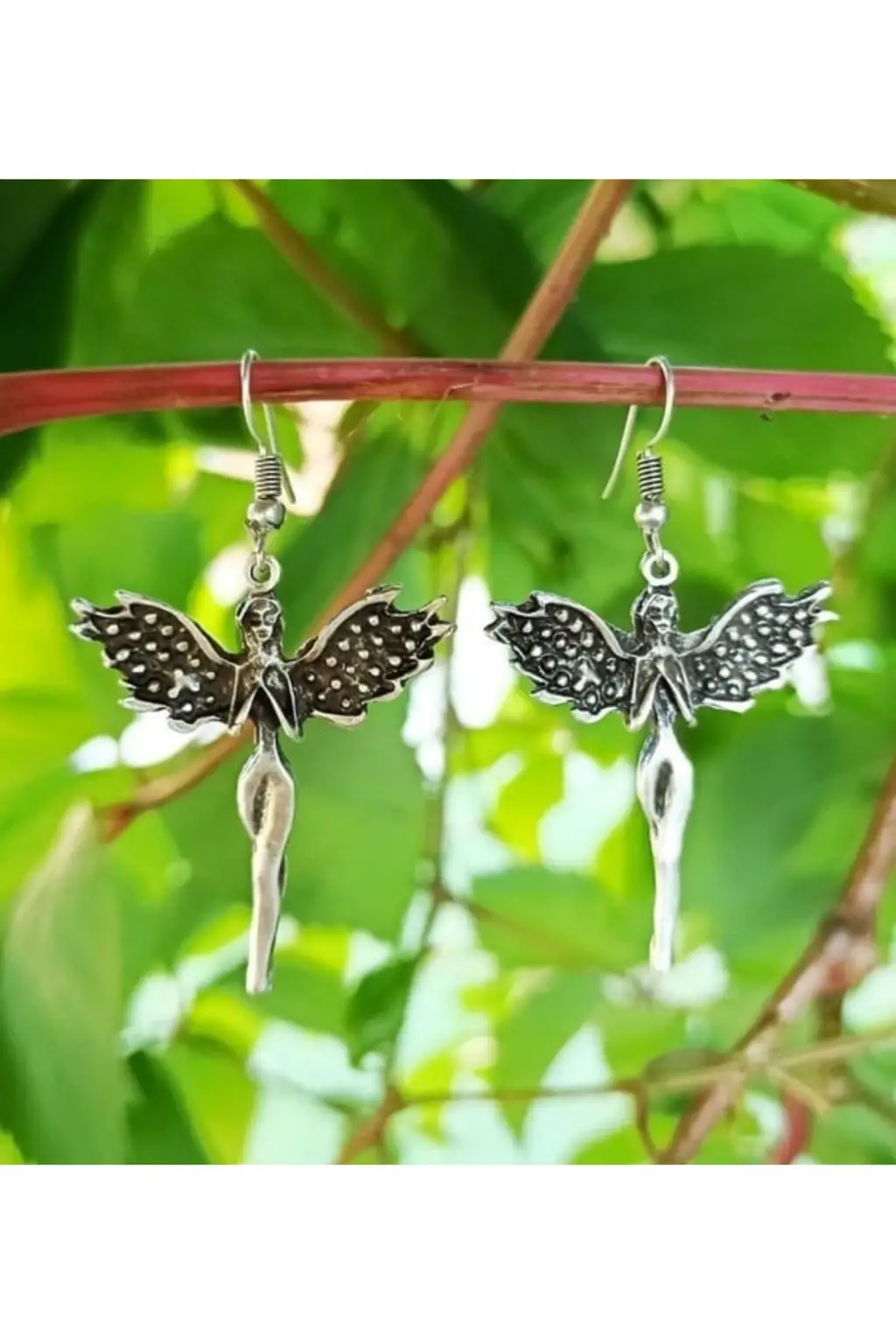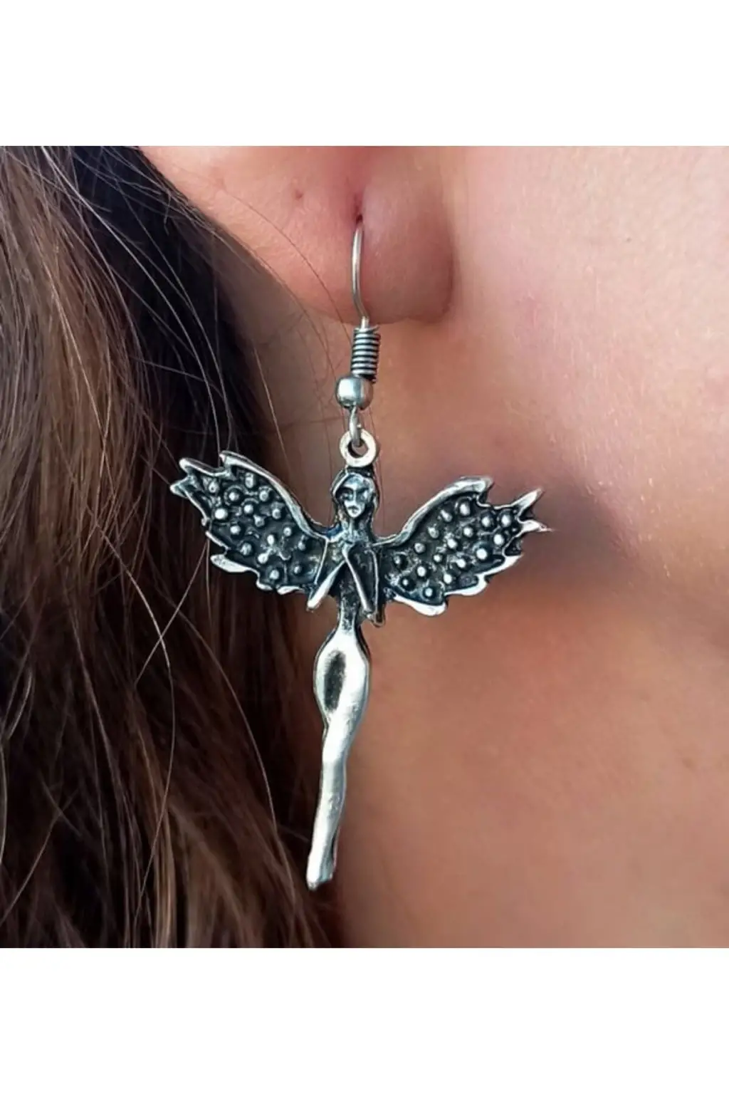 Antik Gümüş Kaplama Vintage Angel Küpe