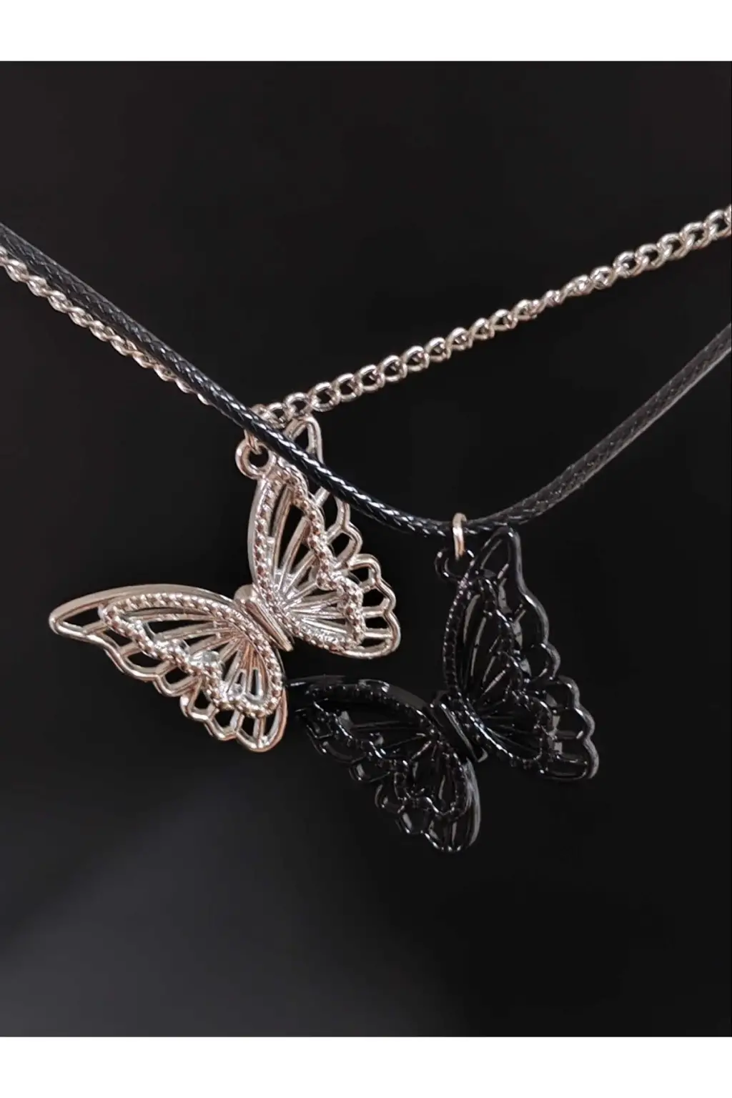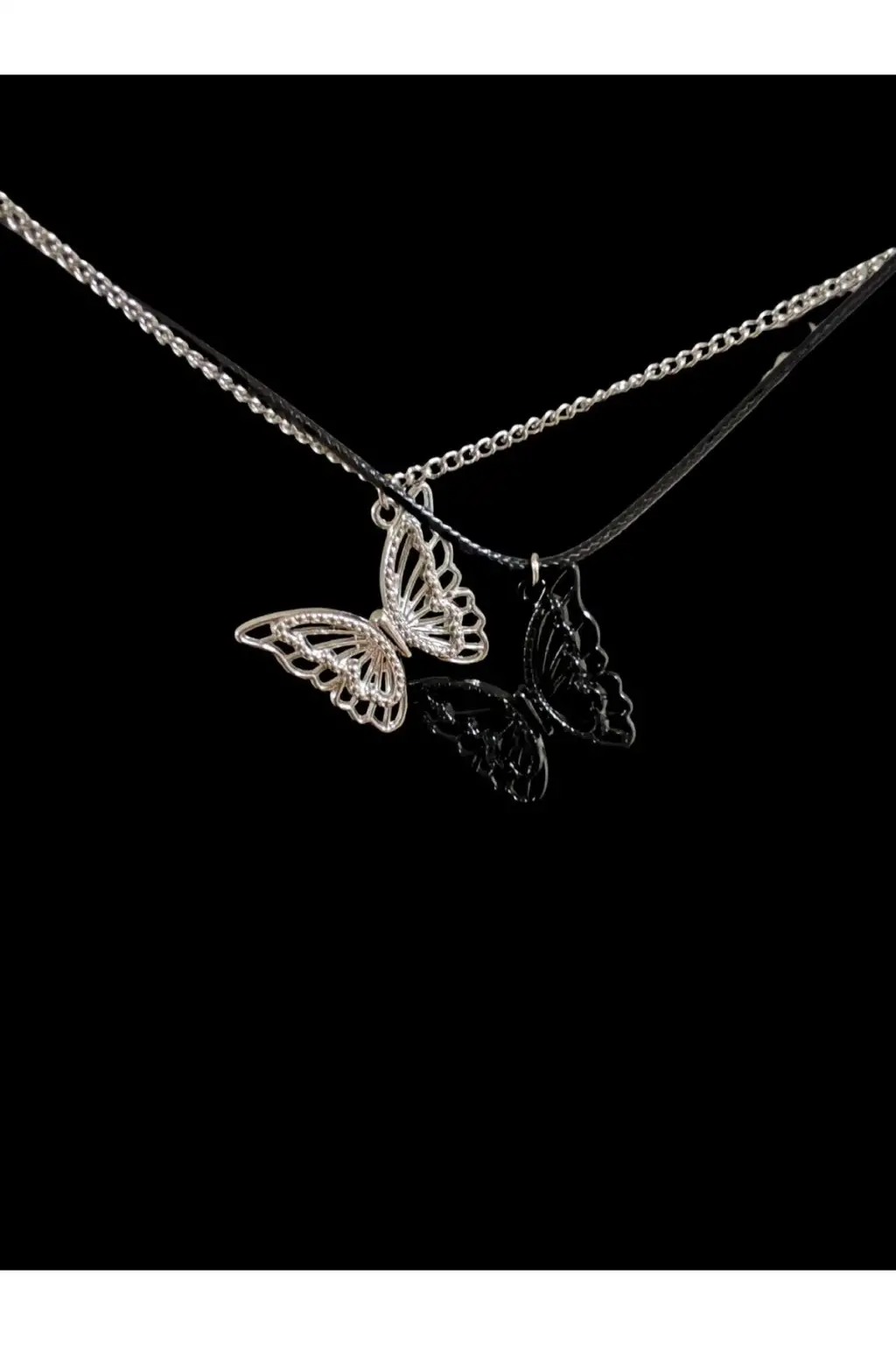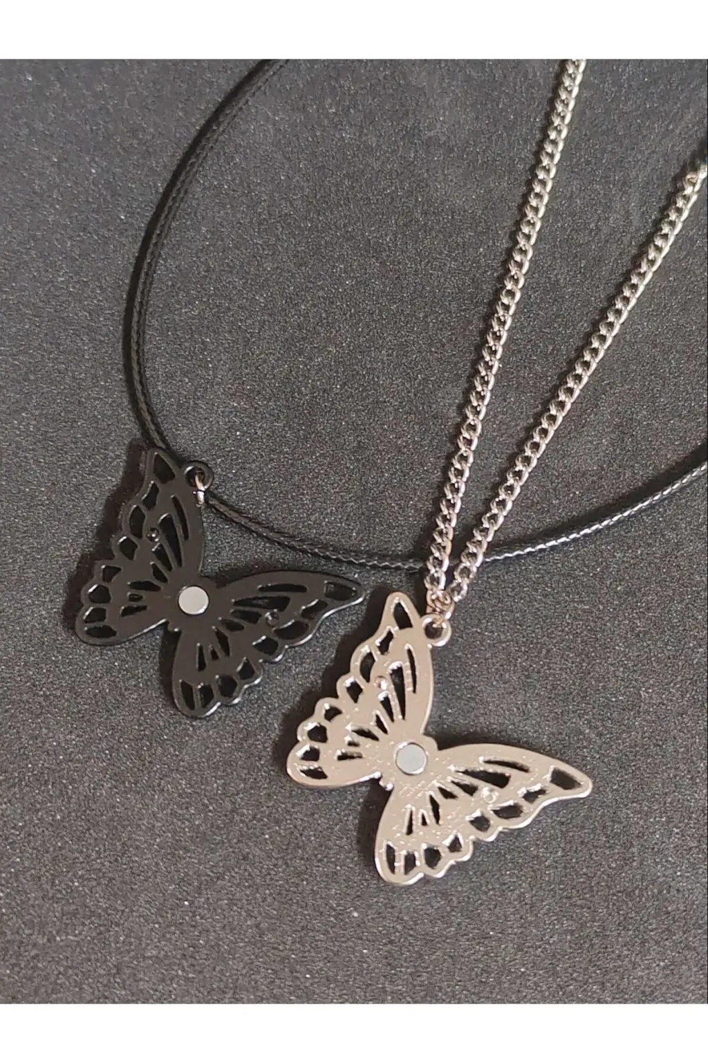 ESC BUTİK Antik Paslanmaz Çelik 2'li Kelebek Butterfly Mıknatıslı Kolye Seti, zarif ve şık tasarımıyla dikkat çekiyor.