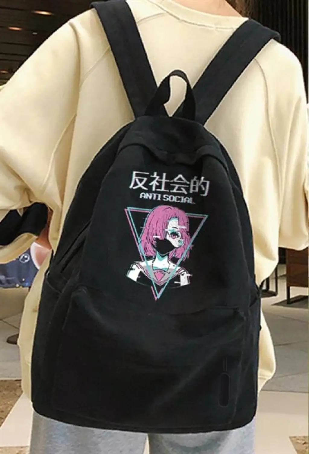 Antisocial Anime Girl Baskılı Unisex Sırt Çantası