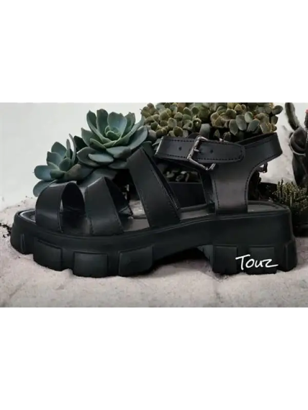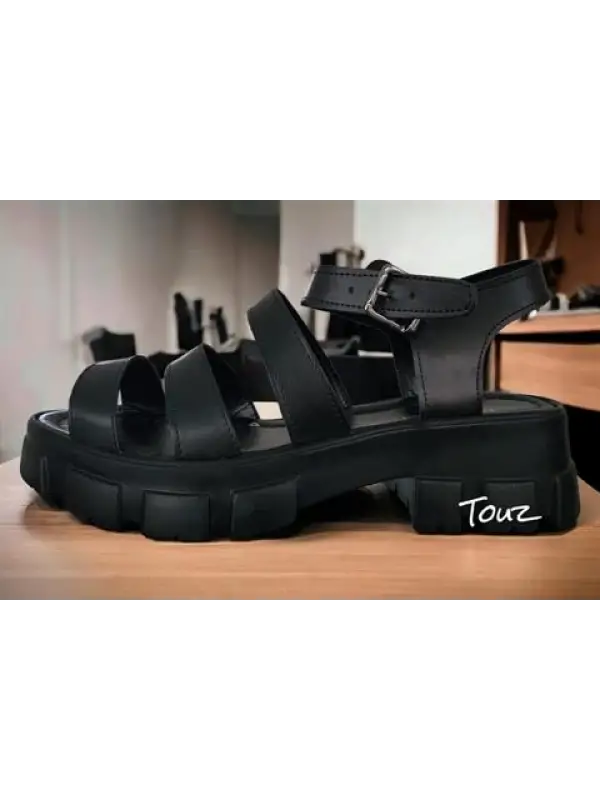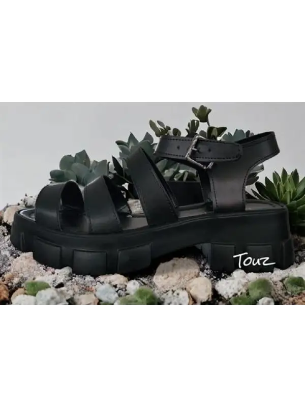 Kalın Tabanlı Tek Tokalı Tokalı Kadın Siyah Sandalet