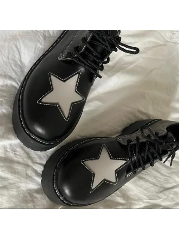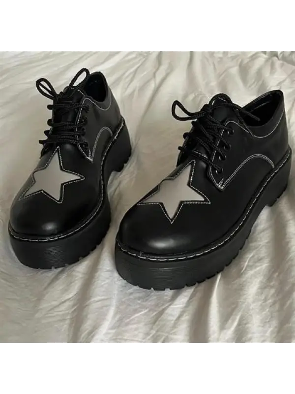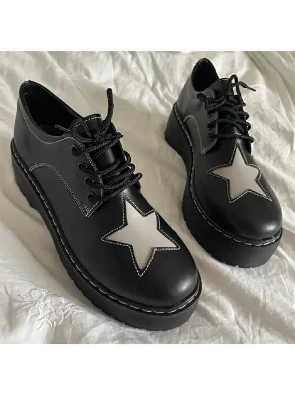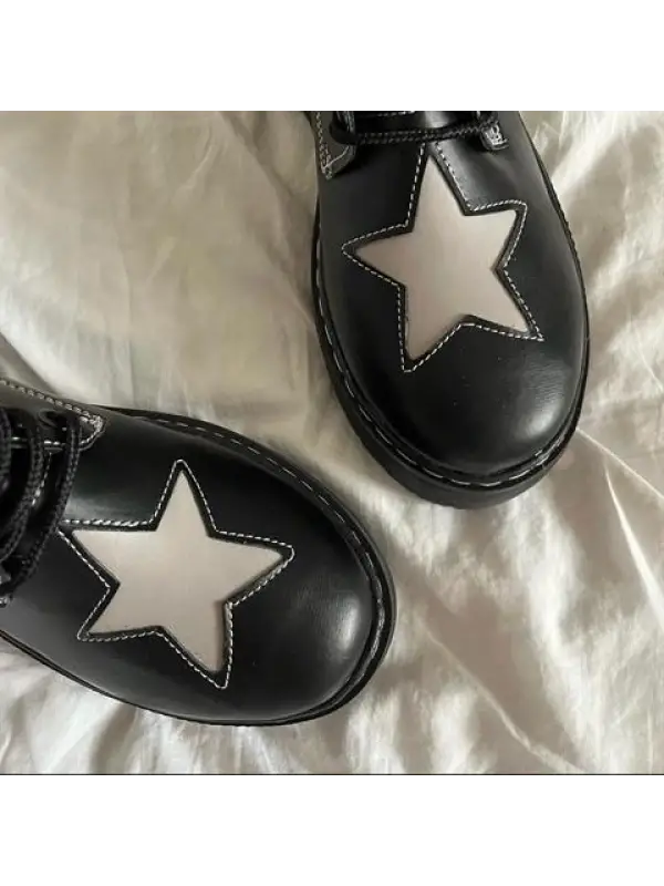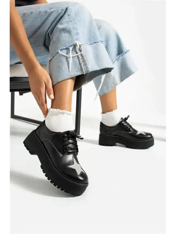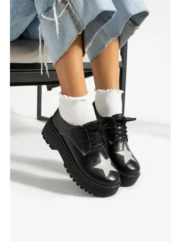 Siyah Oxford Star Detail Lolita Ayakkabı