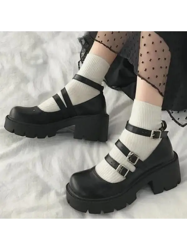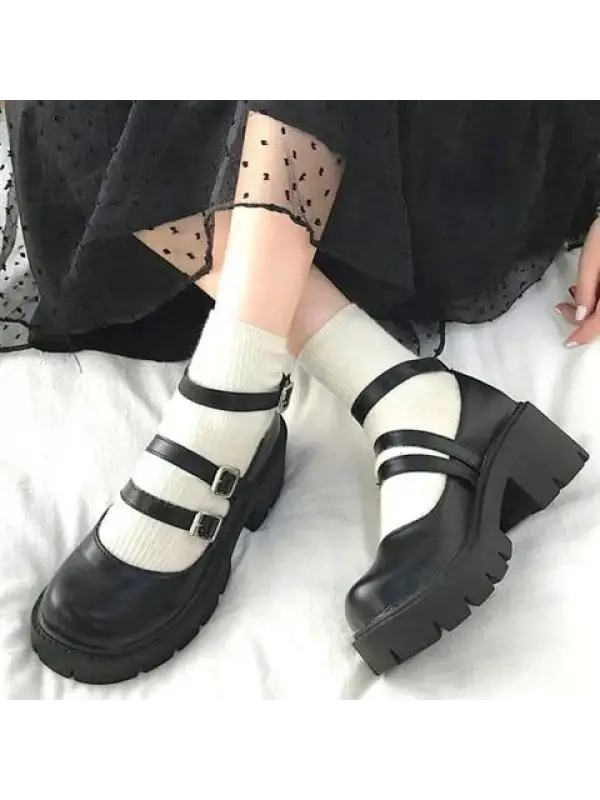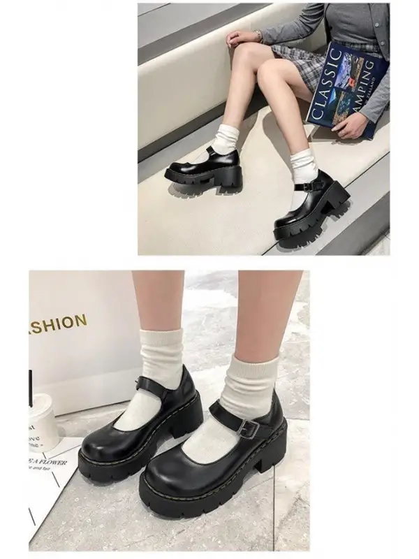 Siyah Oxford Yüksek Taban Lolita Ayakkabı