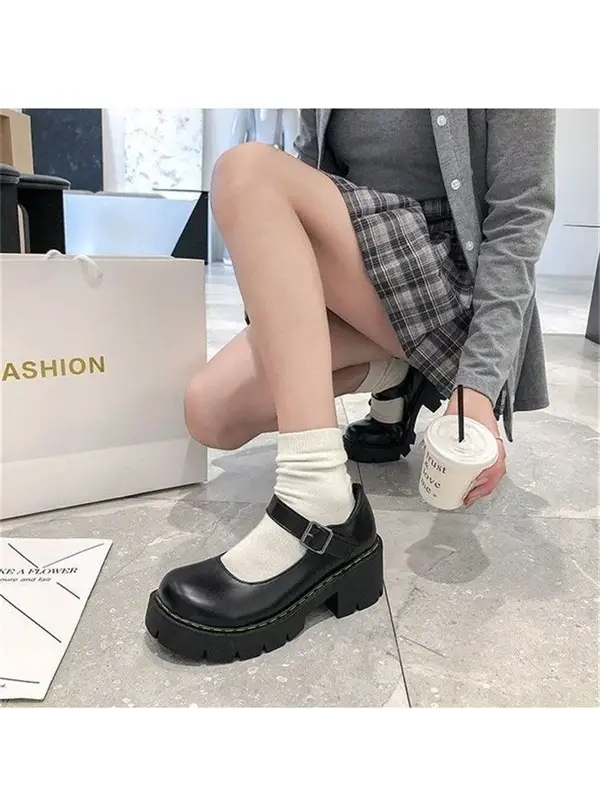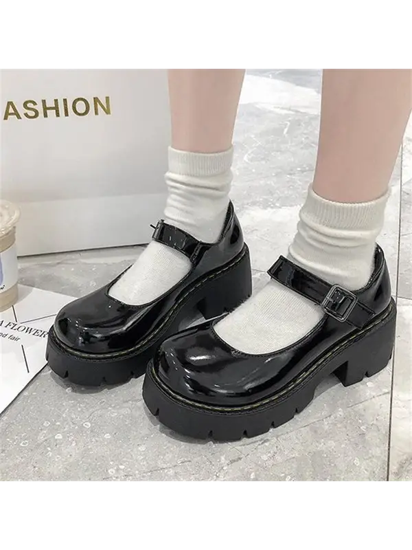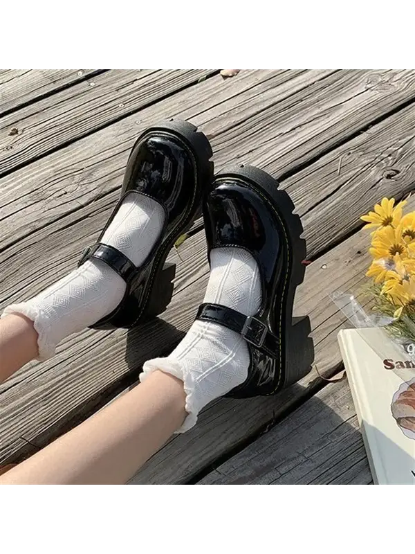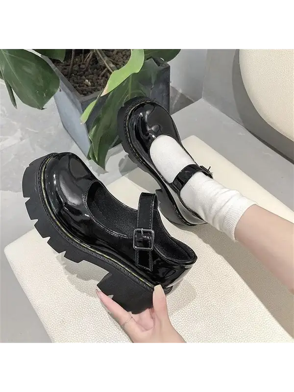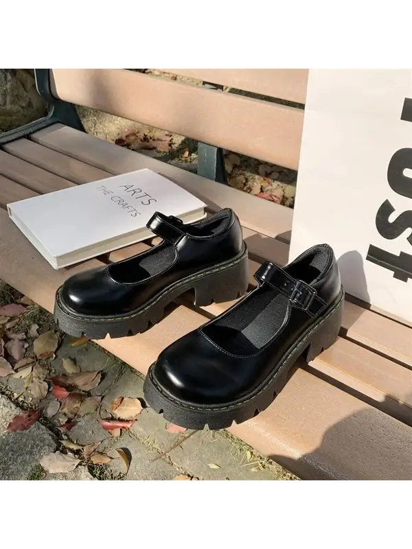 Touz Siyah Oxford Harajuku Tarz Bilek Toka Lolita Ayakkabı