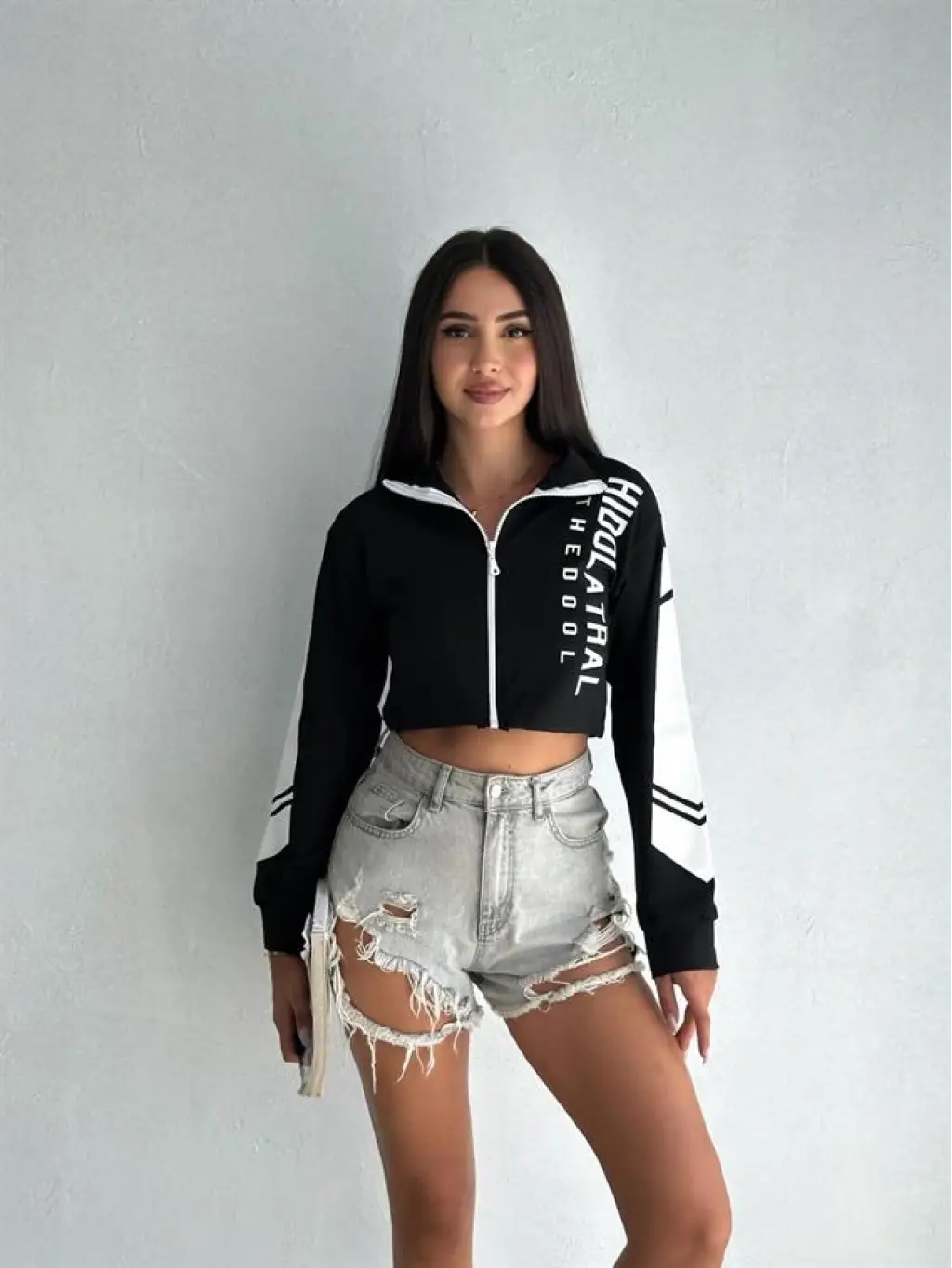 yeni sezon ürünlerinden olan Baskılı Fermuarlı Uzun Kollu Bluz Crop sana çok yakışacak. Biz üretmeye devam ettikçe, sen de tarzına tarz katmaya devam et!