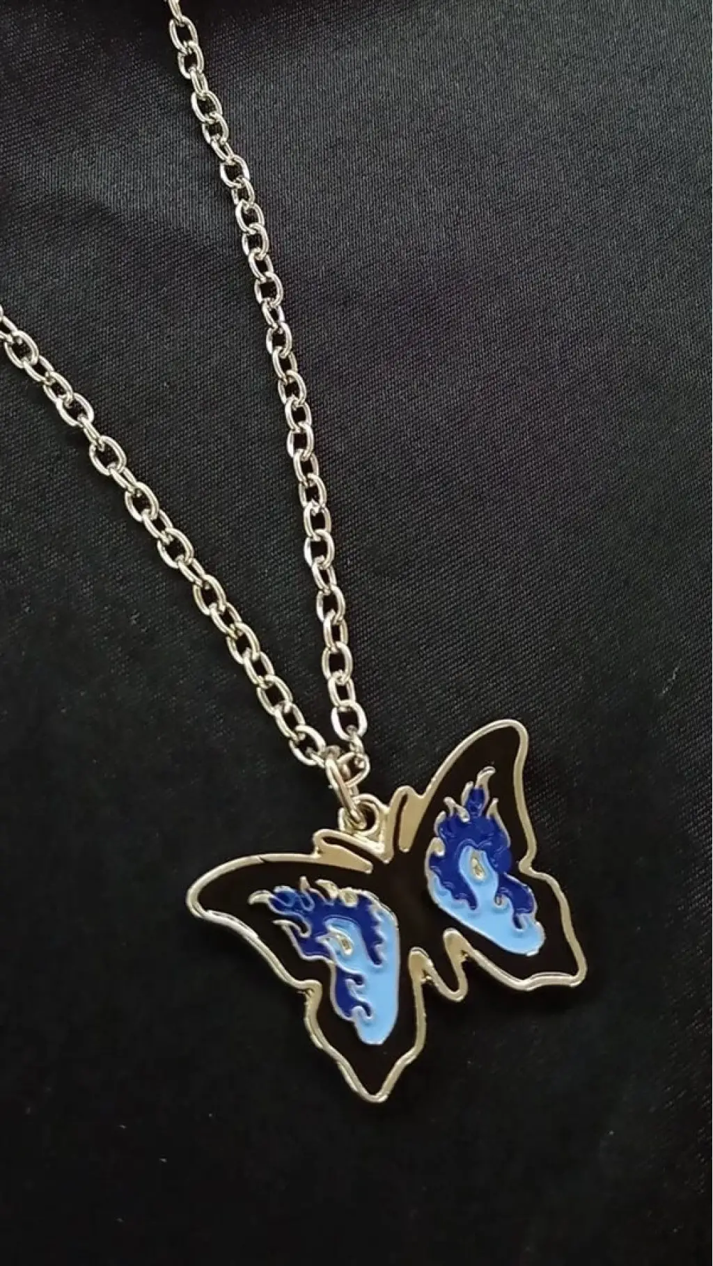 Gümüş Renk Zincirli Mor Taşlı Kelebek İthal Kolye