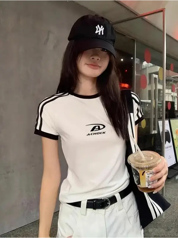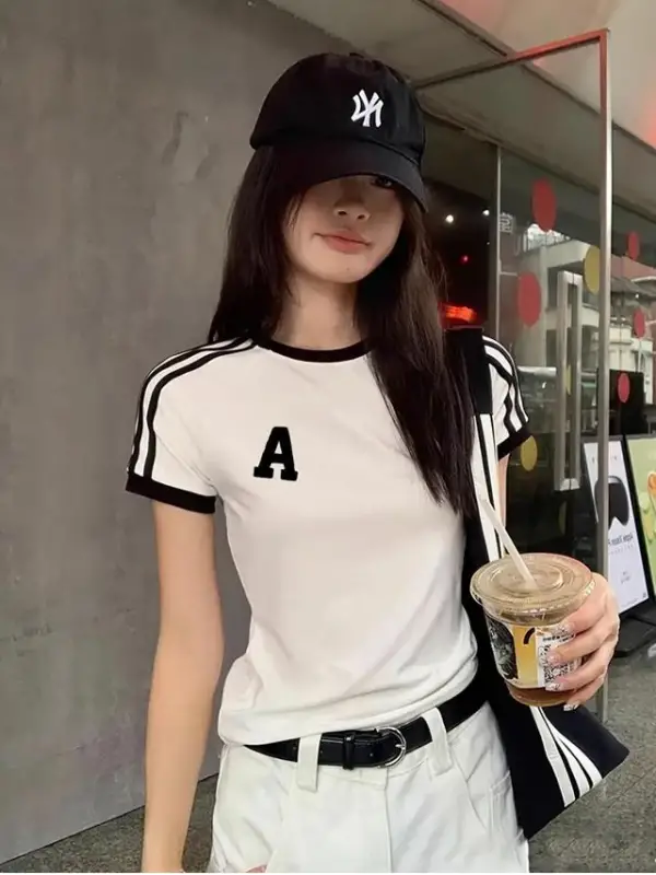 Kurdela Baskılı Şeritli Bluz Body Crop
