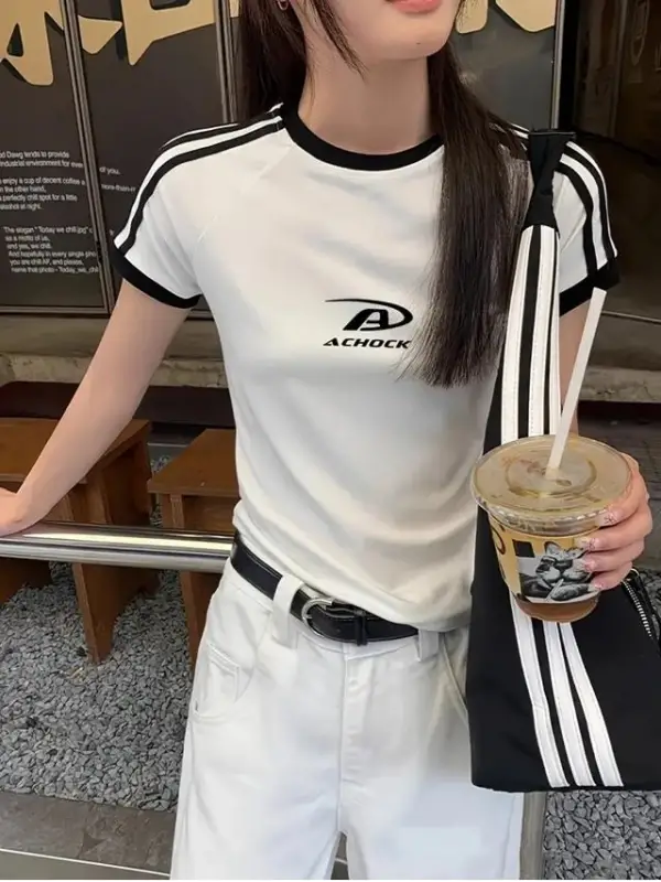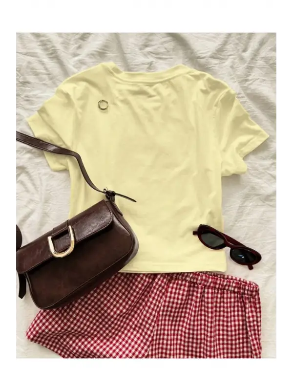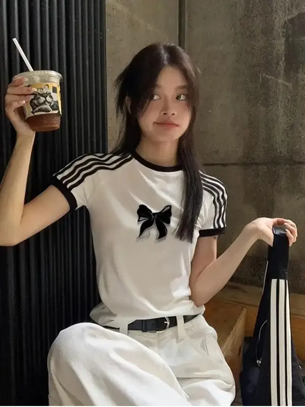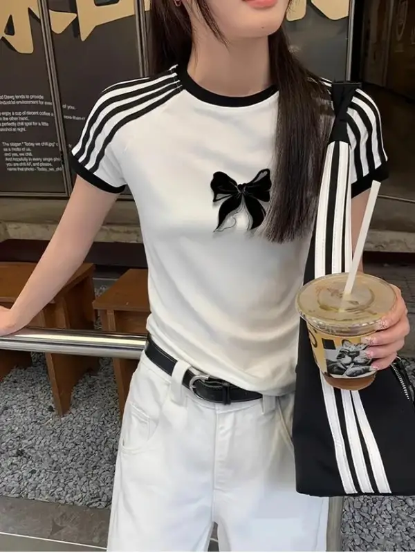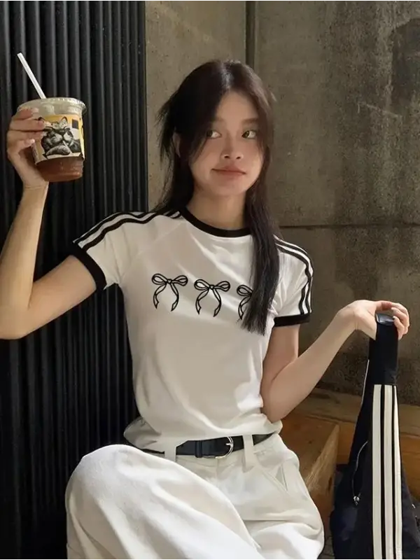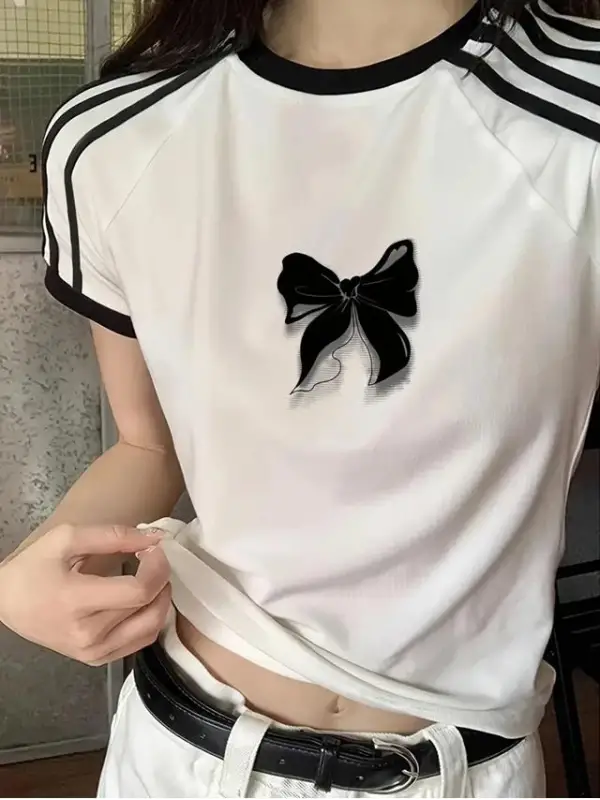 Ribbon Baskılı Şeritli Bluz Body Crop