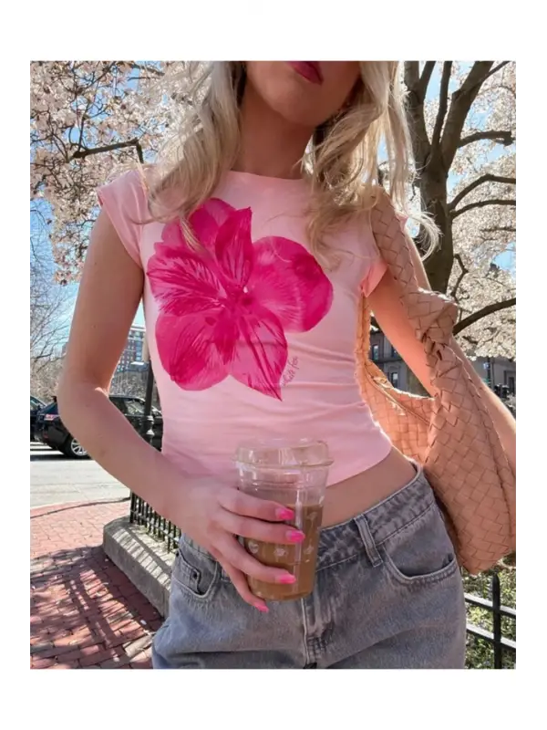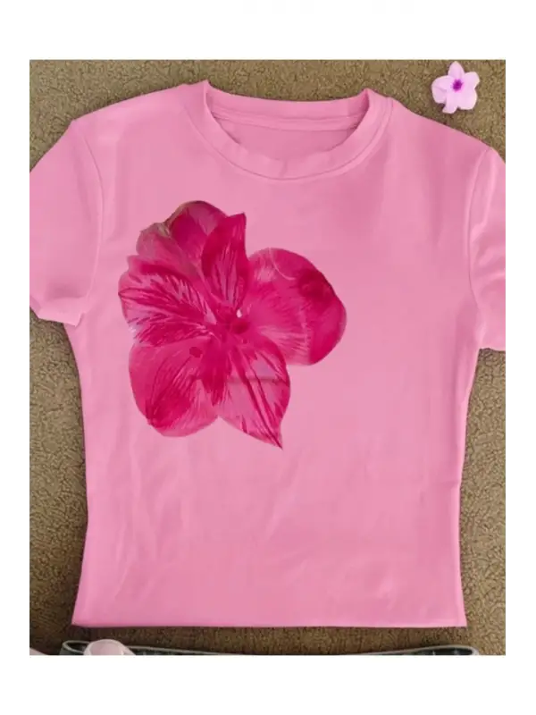 Kemer Boy Baby Tee Red Flowers Crop Bluz