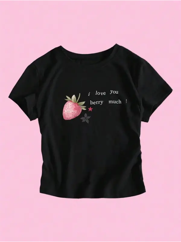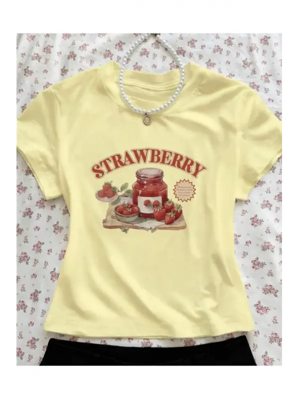 Kemer Boy Baby Tee Strawberry Baskılı Crop Bluz