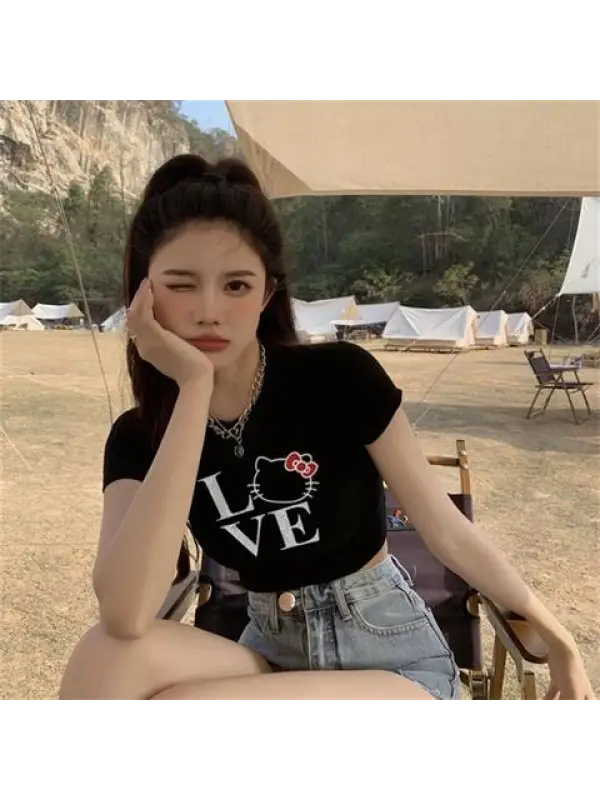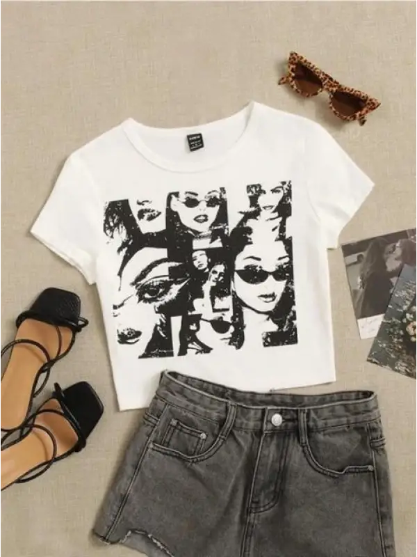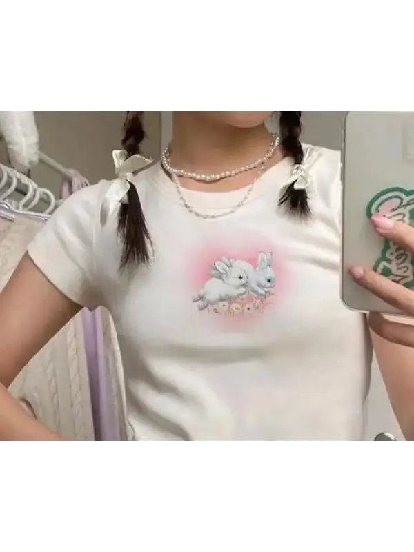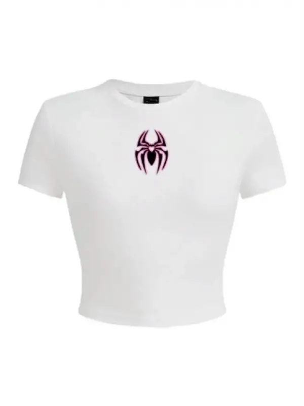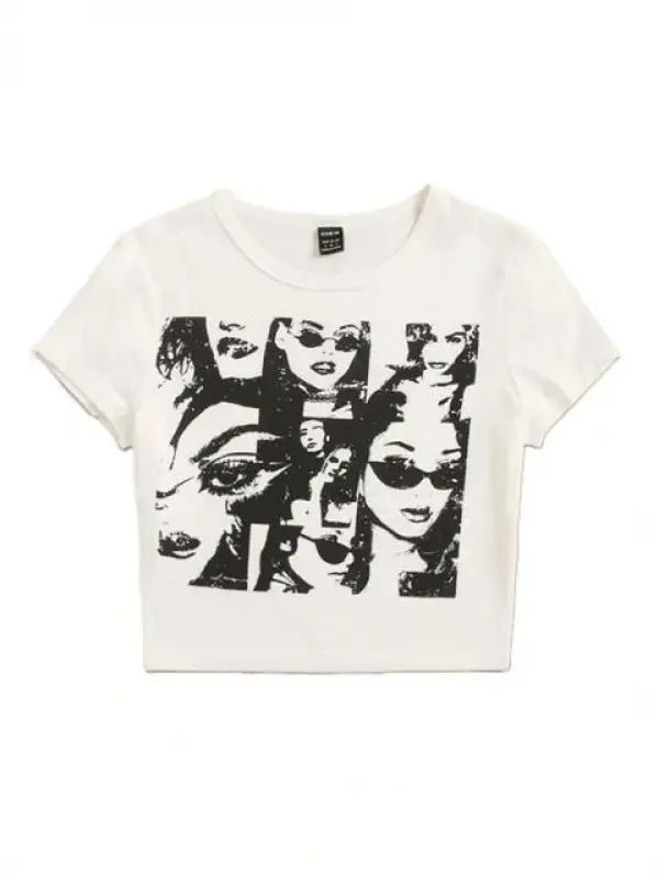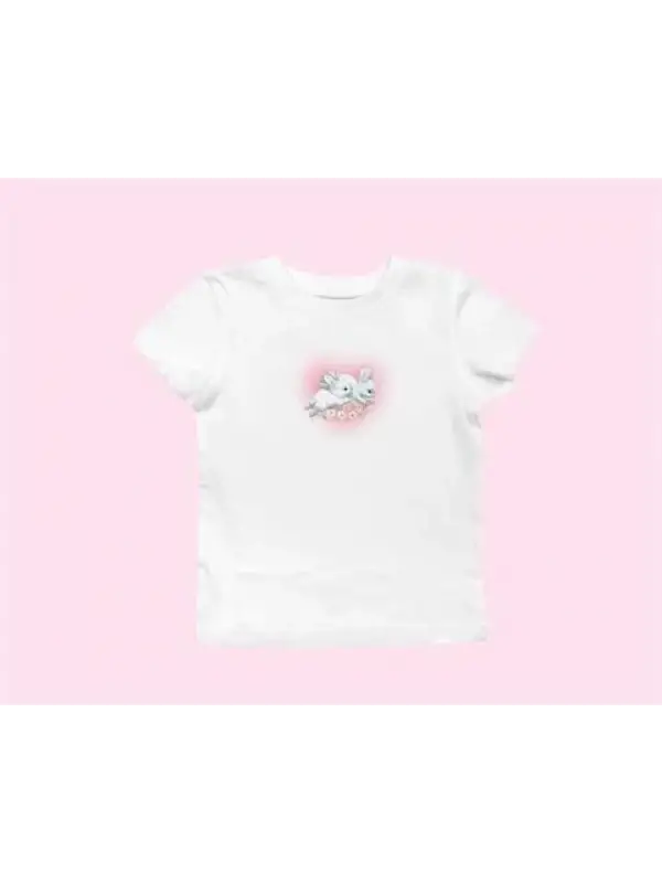 Y2k Cartoon Graphic Tee Beyaz Crop