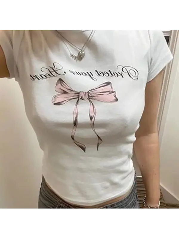 Kemer Boy Protect Your Heart Baskılı Beyaz Crop