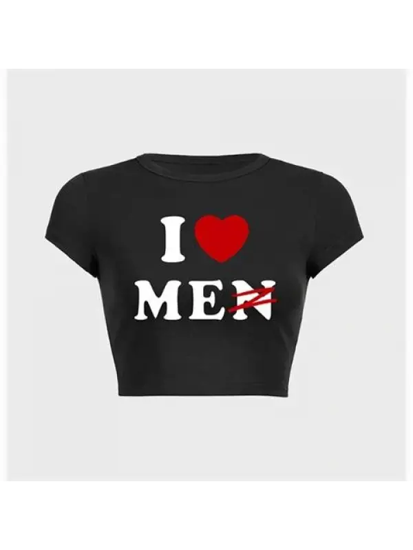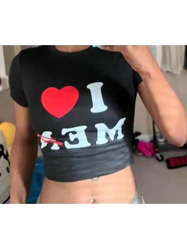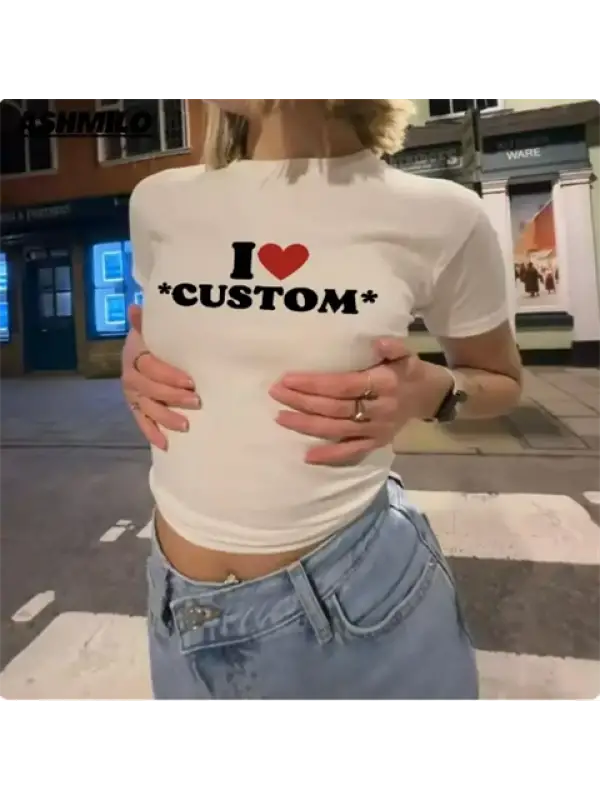 Kemer Boy Y2k I Love Custom Baskılı Beyaz Crop