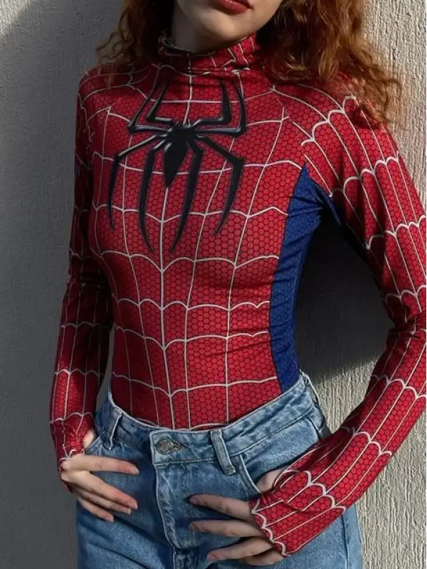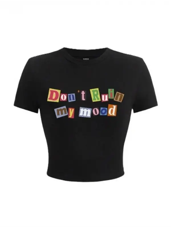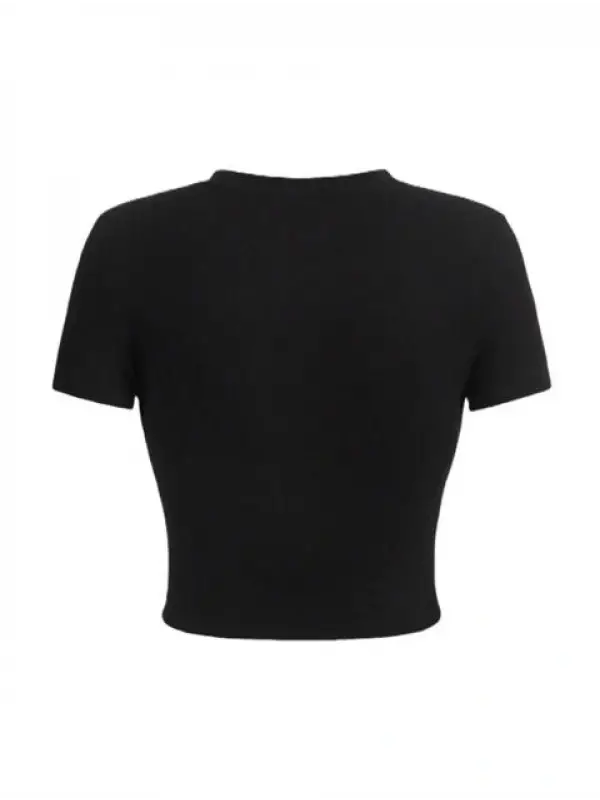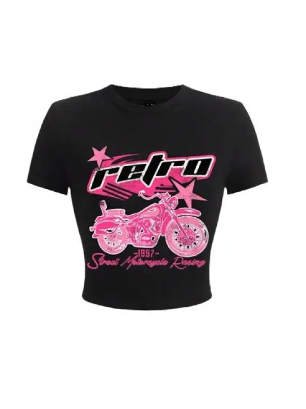 Y2k Letter & Motorcycle Baskılı Siyah Crop