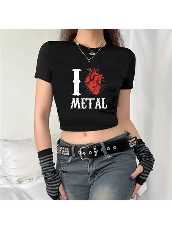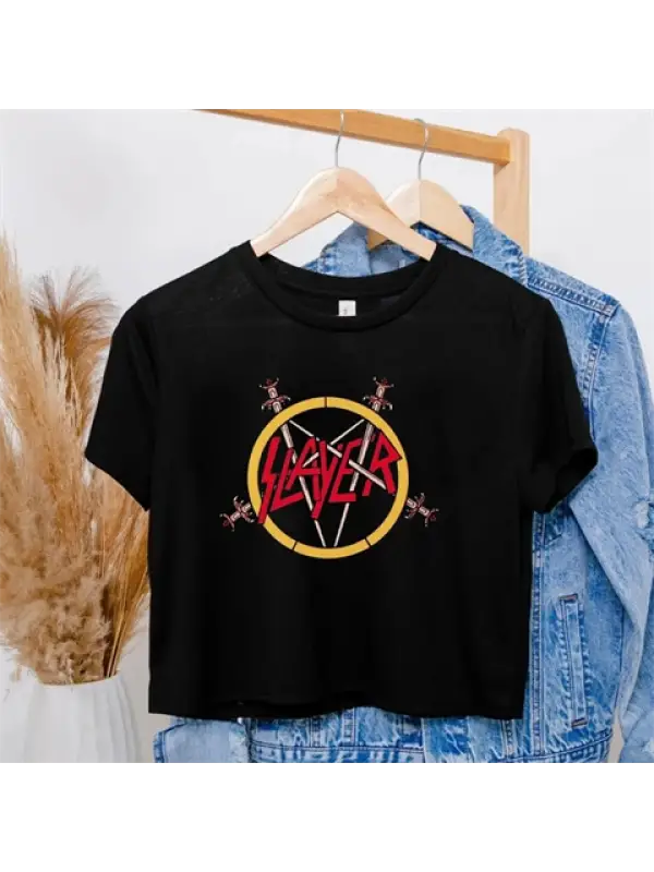 Rock Serisi Hard Rock Slayer Baskılı Siyah Crop