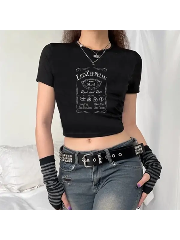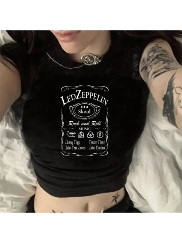 Rock Grubu Led Zeppelin Baskılı Siyah Crop