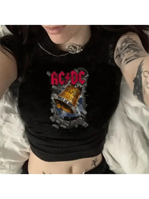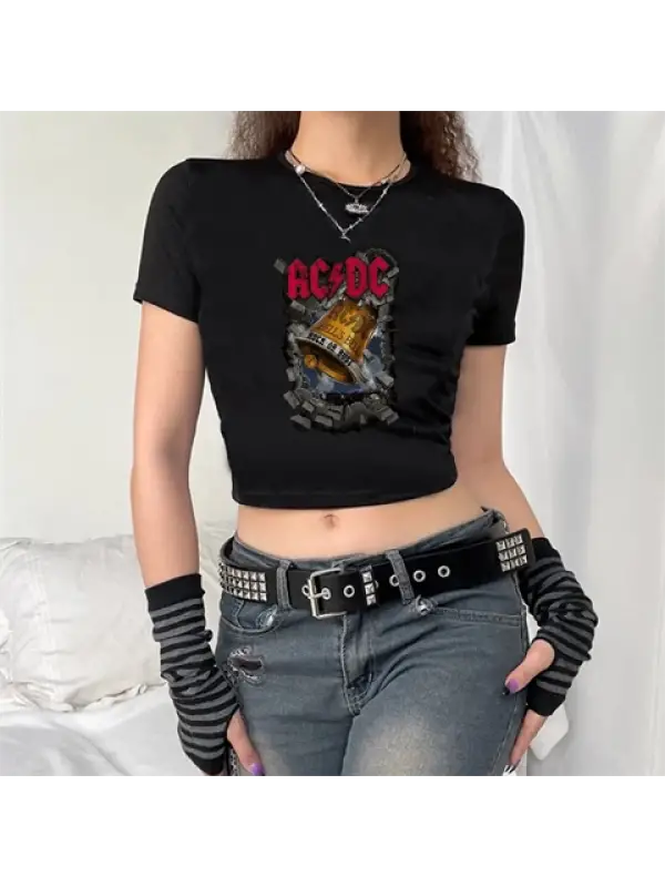 Rock Serisi AC/DC Logo Baskılı Siyah Crop