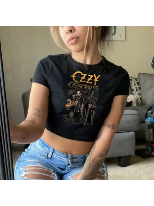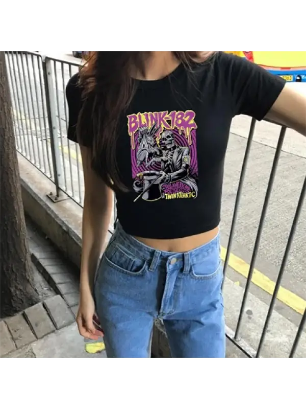 Rock Serisi Blink 182 Baskılı Siyah Crop