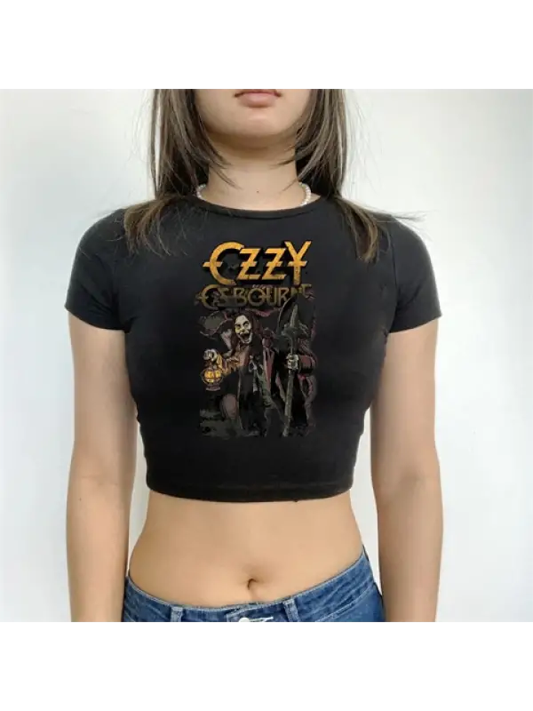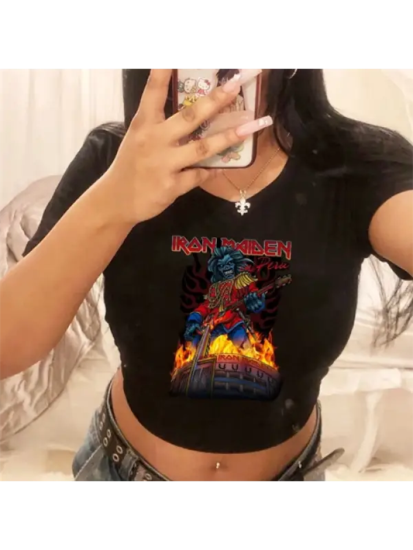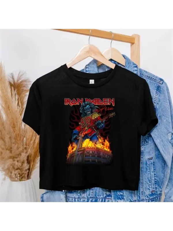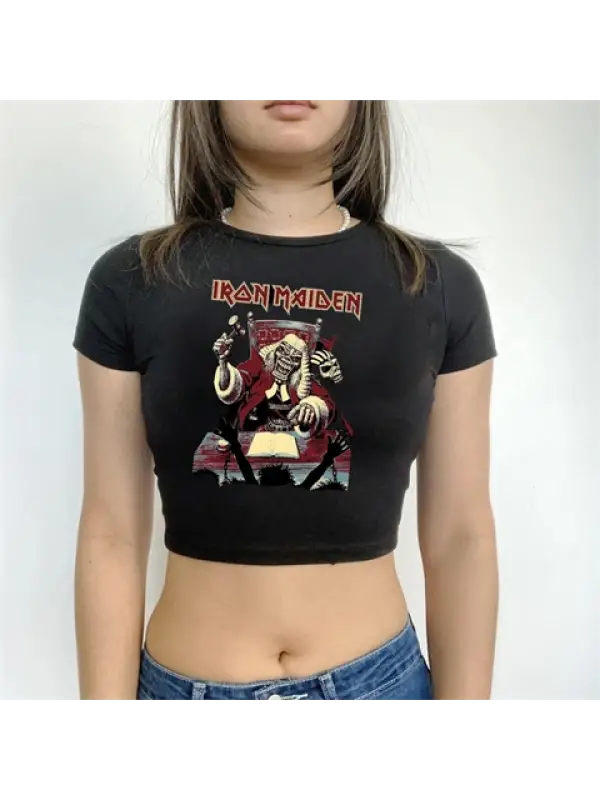 Rock Serisi Iron Maiden Baskılı Siyah Crop