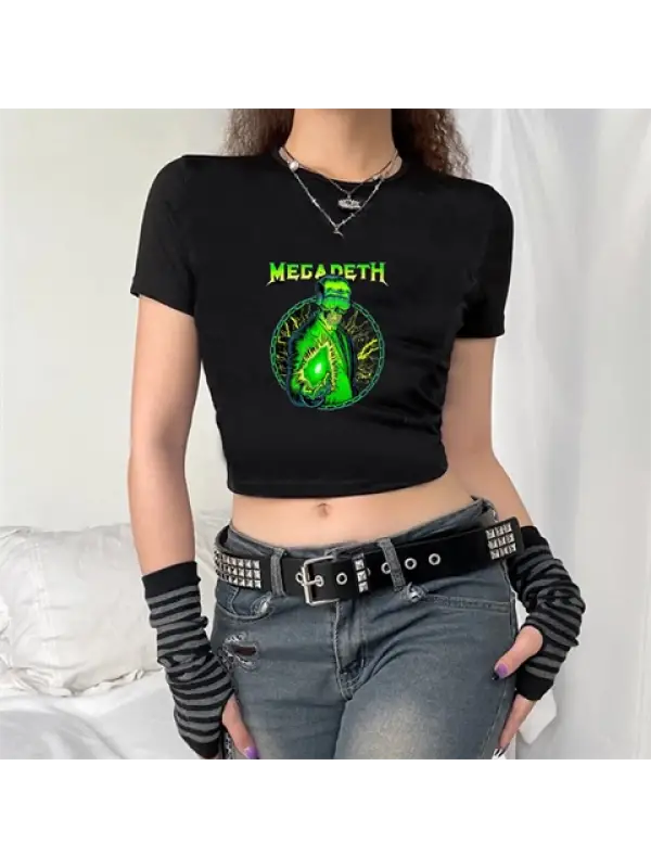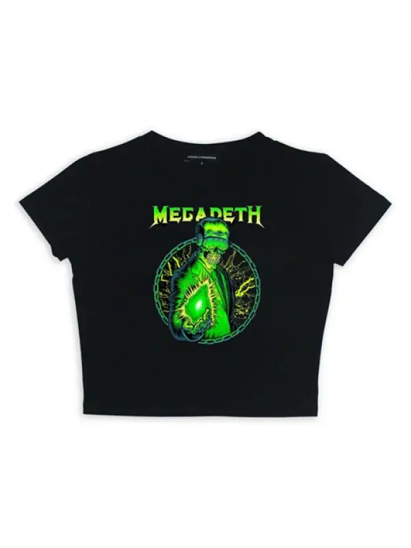 Rock Serisi Megadeth Baskılı Siyah Crop