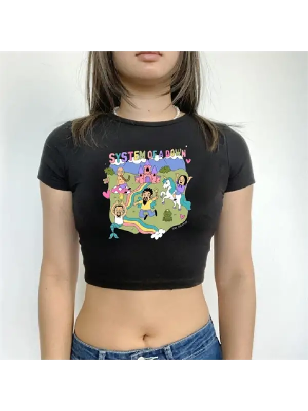 Rock Serisi Systeam Of A Down Baskılı Siyah Crop