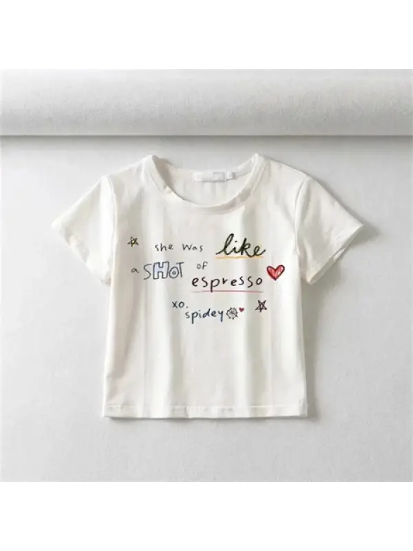 She Was Like Shot Of Espresso Baskılı Beyaz Crop