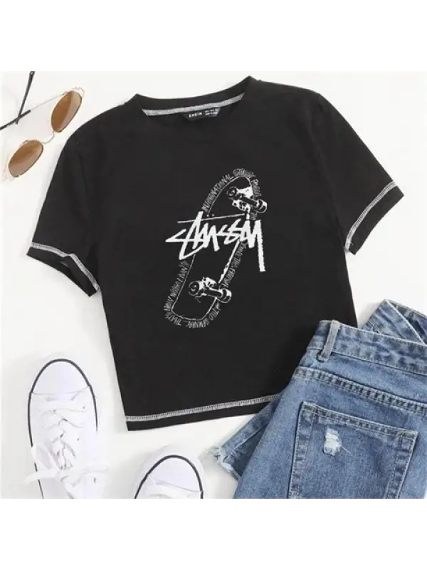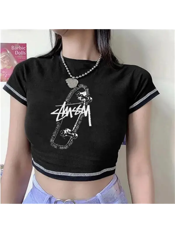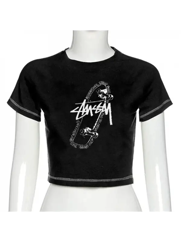 Y2k Skateboard Ters Dikiş Siyah Crop