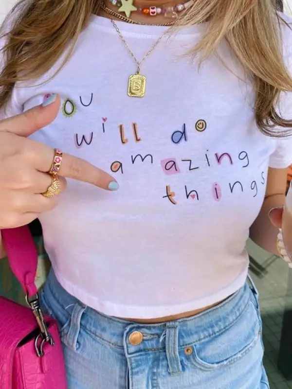 Amazing Things Baskılı Beyaz Crop