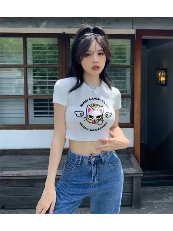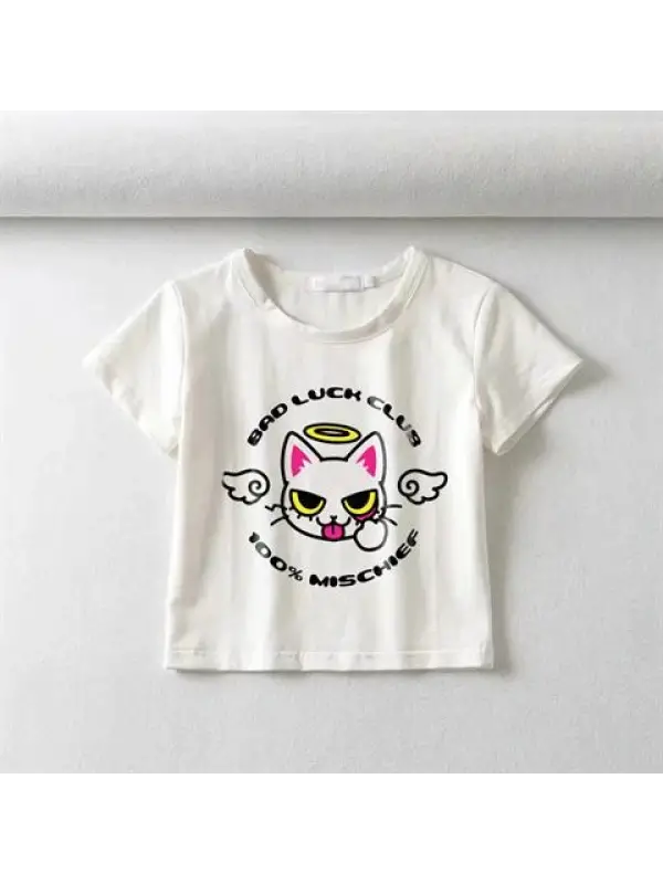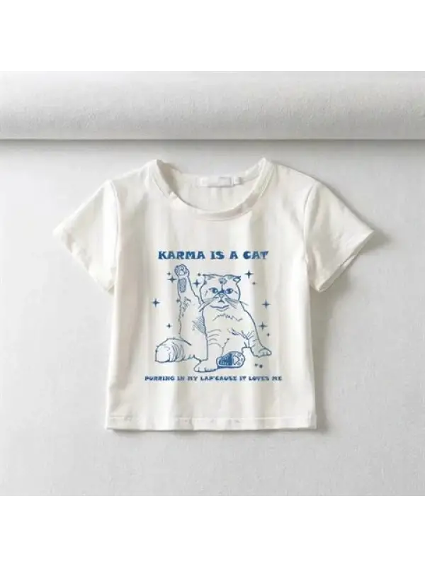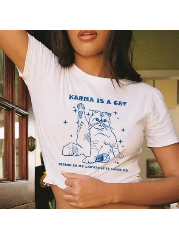 Karma Is A Cat Baskılı Beyaz Crop