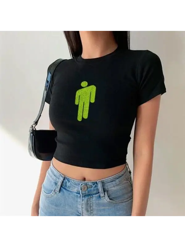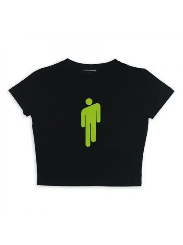 Billie Eilish Logo Baskılı Siyah Crop