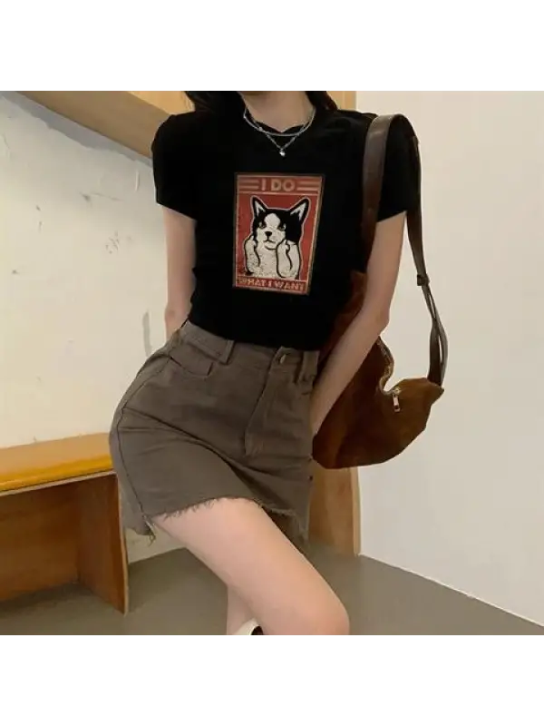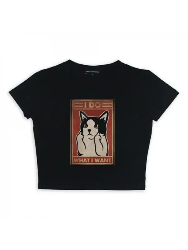 I Do What I Want Baskılı Siyah Crop